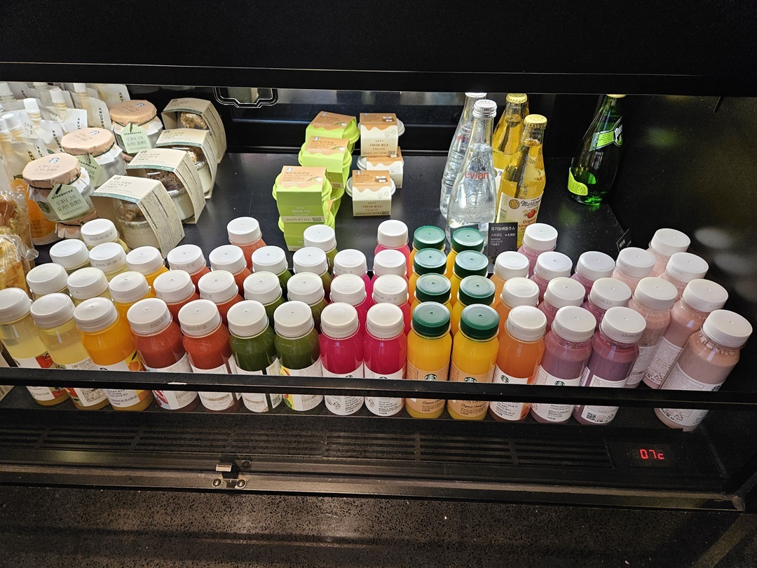 과일주스와 요거트도 바로 마실 수 있게 준비되어 있었는데요. 달콤한 딸기가 가득 들어있는 딸기 가득 요거트로 골랐습니다. 다 마셔보고 싶더라구요~