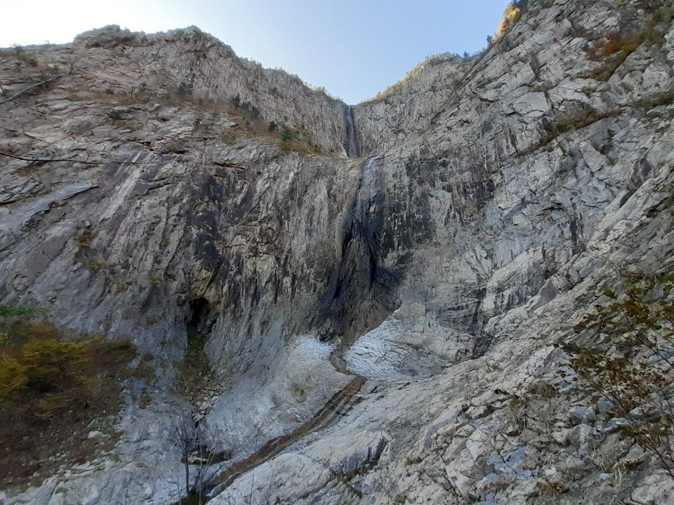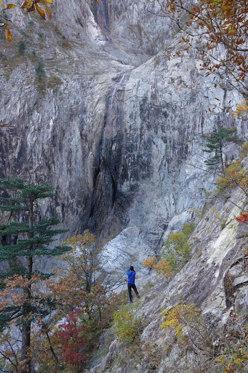 드디어 토왕성폭포 도착했습니다.^^ 토왕성폭포는 신광폭포, 토왕폭이라고 부리기도 하는데 설악산을 대표하는 3대 폭포 중 하나라고 합니다. 외설악 칠성봉 북쪽 계곡 450m 지점에 있습니다.
