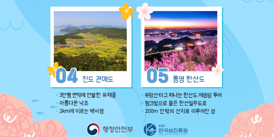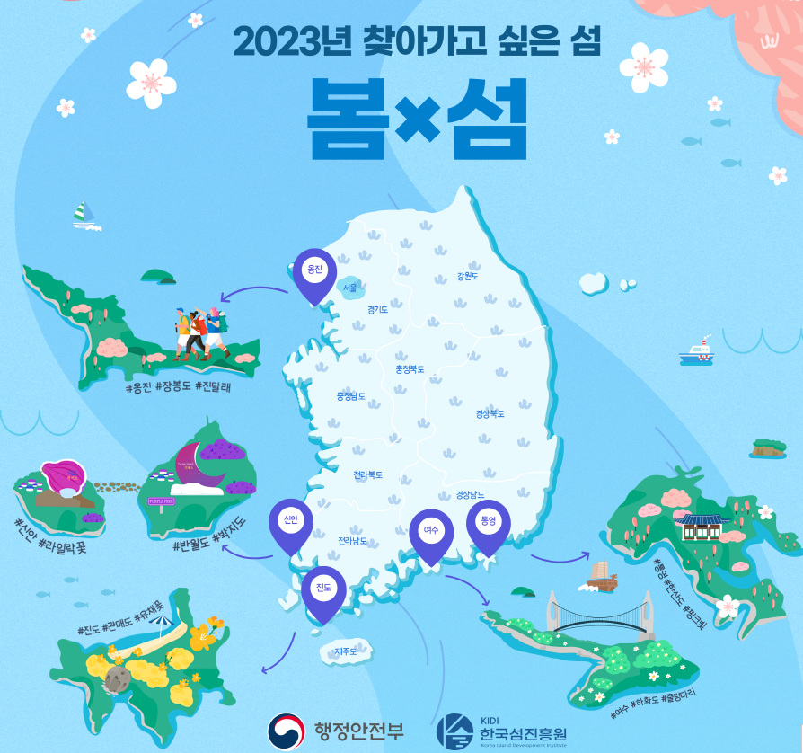 섬 여행 계획하고 계신가요? 2023 찾아가고 싶은 섬, 봄섬 여행하시고 이벤트도 도전해 보시기 바랍니다. 총 다섯 곳 섬을 방문하여 인증샷을 남기면 이벤트 도전 완성입니다.
