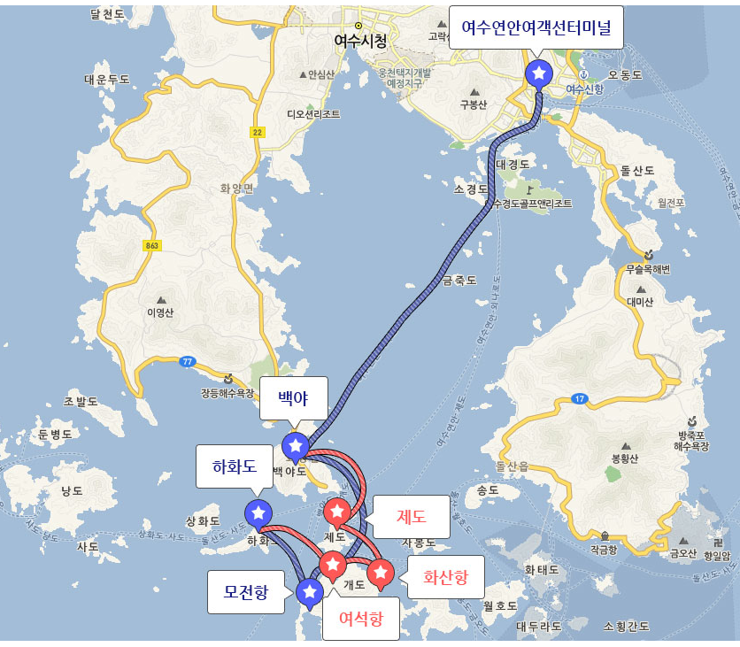 여수 인근섬과 하화도 가는 배편은 아래 링크를 통해 확인하실 수 있습니다.