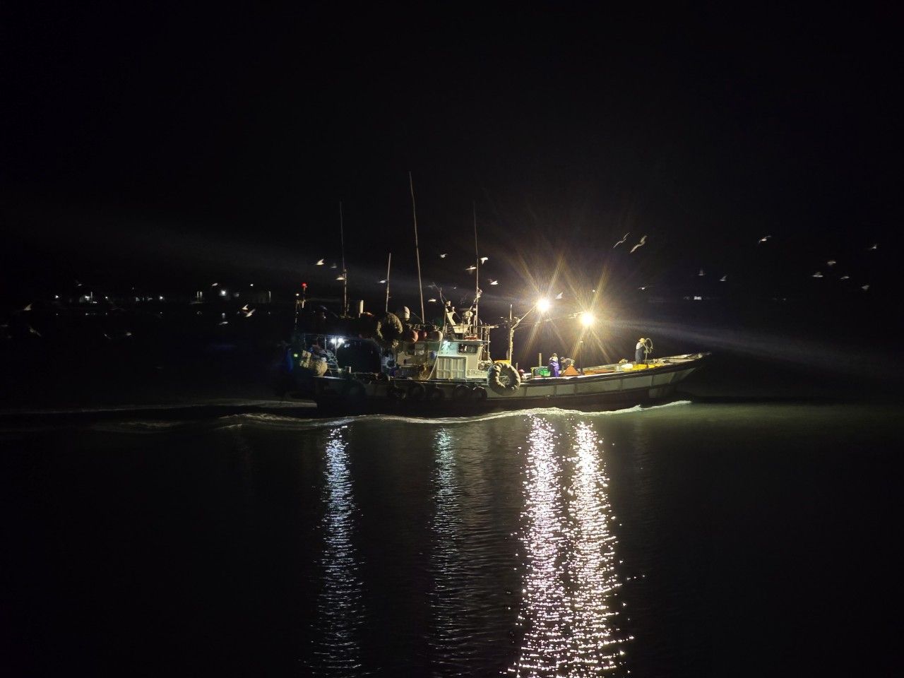 만선의 고기잡이 배와 함께 갈매기들이 함께 따라 다녔네요~