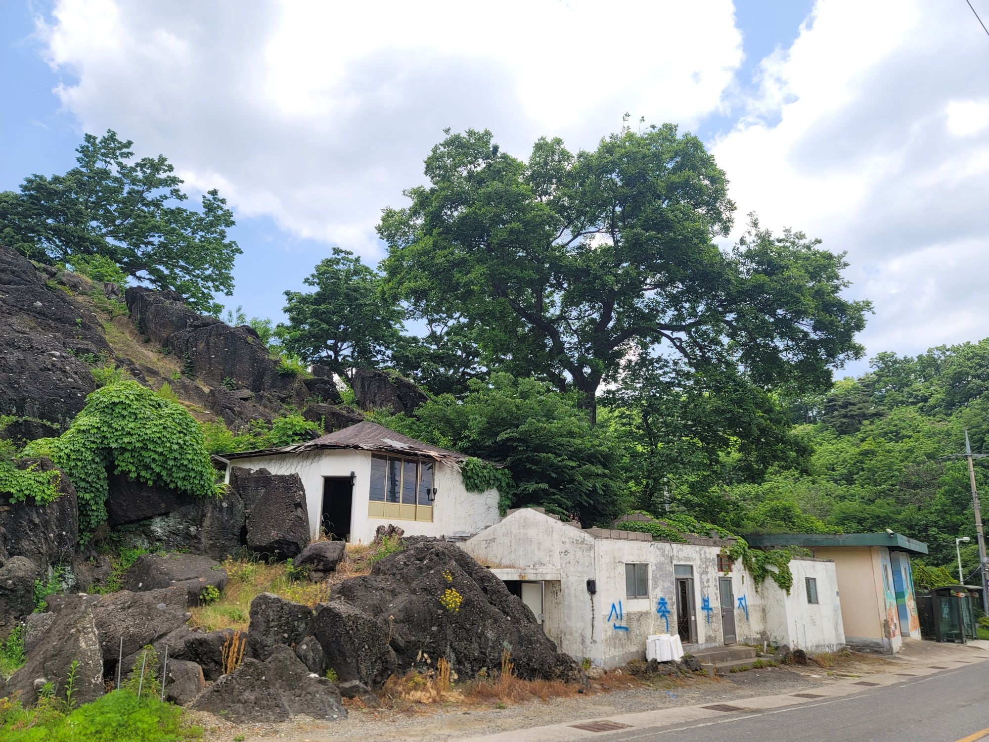 돌팡깨와 허름한 건물~ 둘 다 오래되었다는 공통점이 있어 보입니다. 뭔가 모를 갬성 있는 건물이네요~