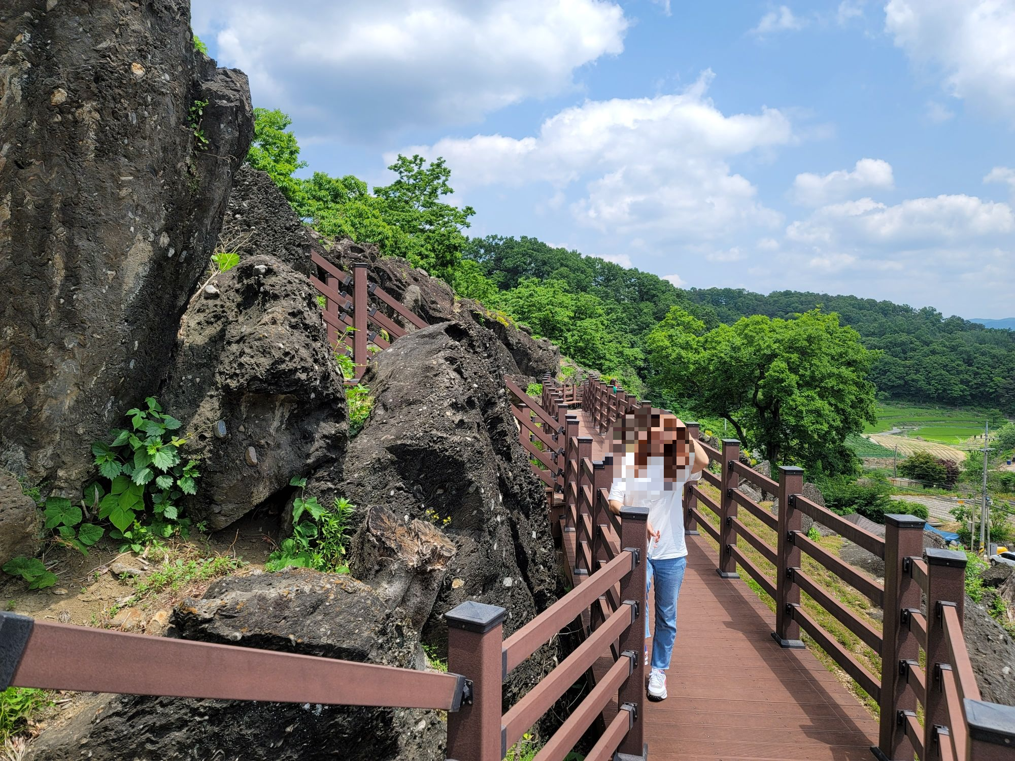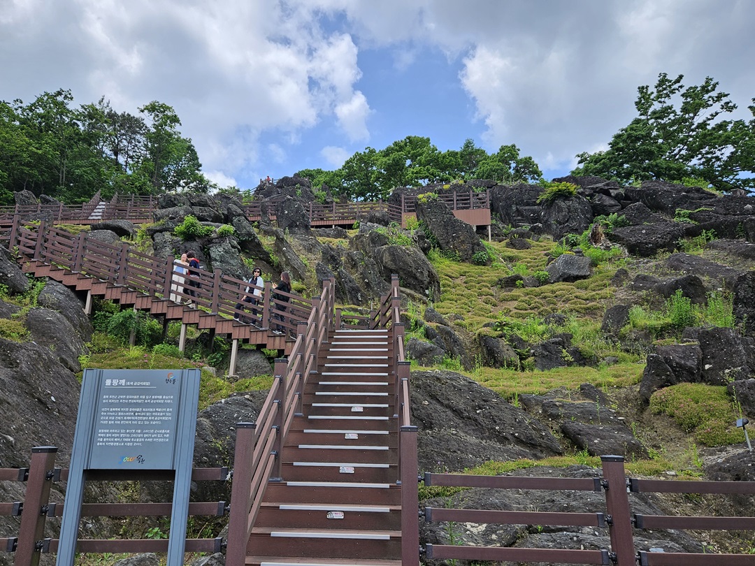 사진으로 보면 계단이 많아 보이지만 실제로 걸어올라 가면 금방 정상에 도착한답니다. 돌들 사이사이로 데크를 안전하게 잘 설치해 놓아서 아주 편리하게 돌팡깨를 한눈에 담아 올 수 있었네요~^^