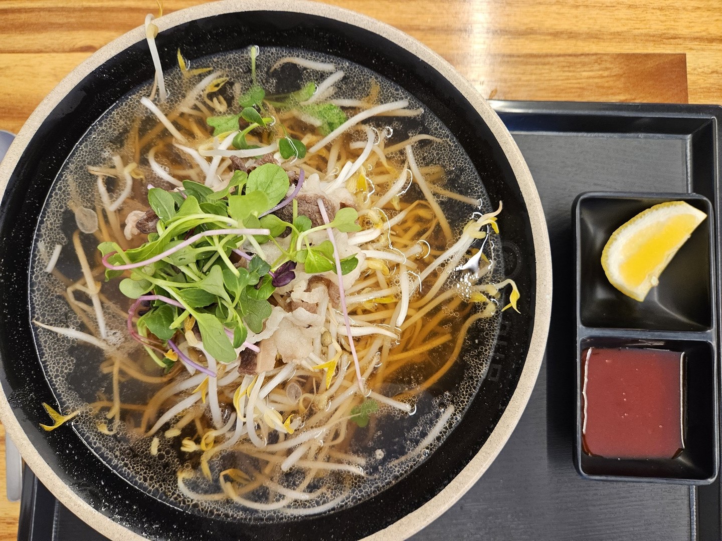 골고루 섞어서 한입 가득 먹으니 국물이 아주 진국이었답니다. 채소와 숙주, 소고기가 적당히 섞여 있어서 아삭거리는 식감도 좋았던 것 같고 따끈한 국물을 먹으니 더 든든한 한 끼였던 것 같습니다.