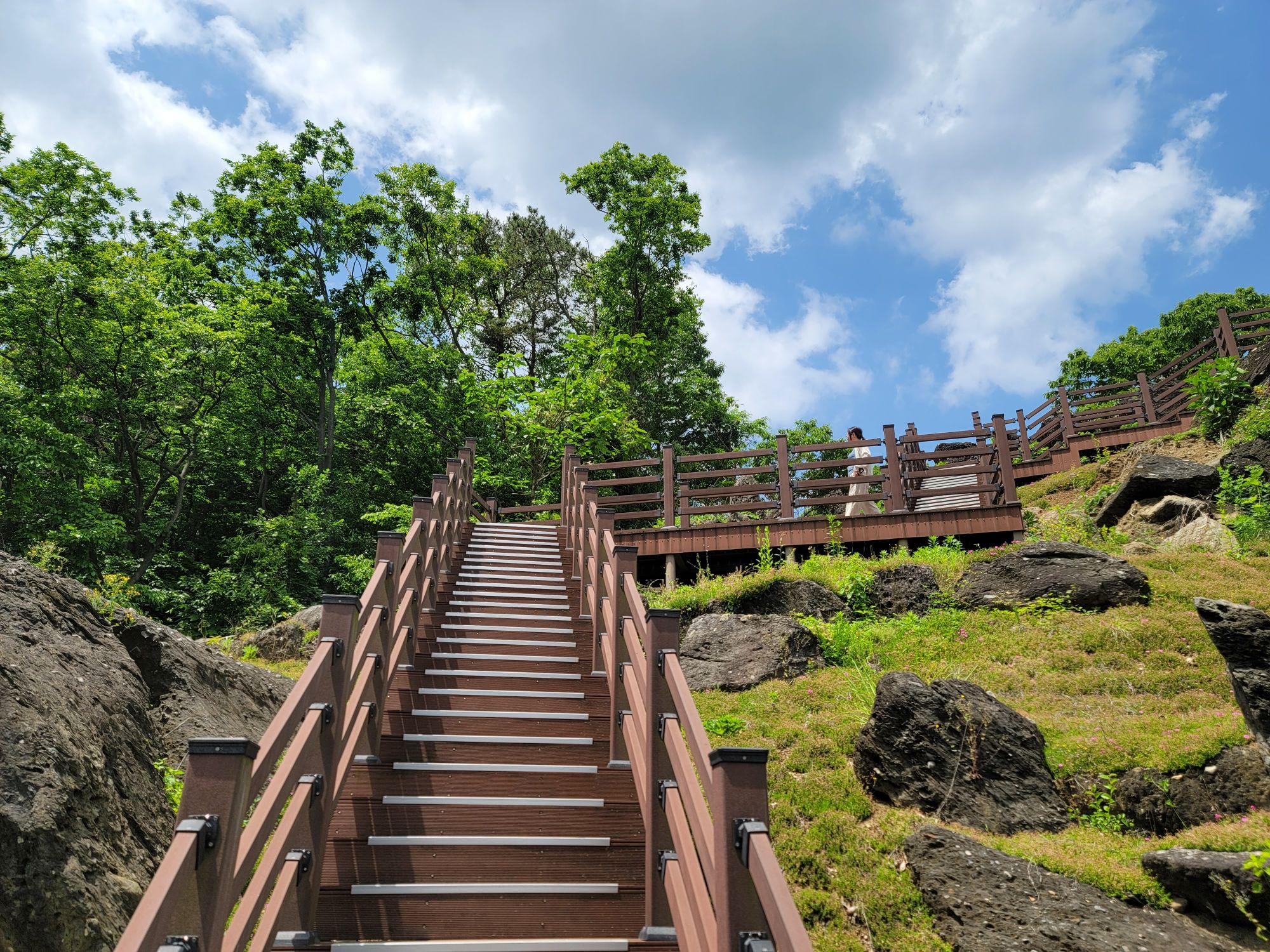 데크 계단은 아주 안전하고 힘들지 않게 오를 수 있었는데요. 딱 볼거리가 있는 방향으로 잘 배치해 놓았습니다.