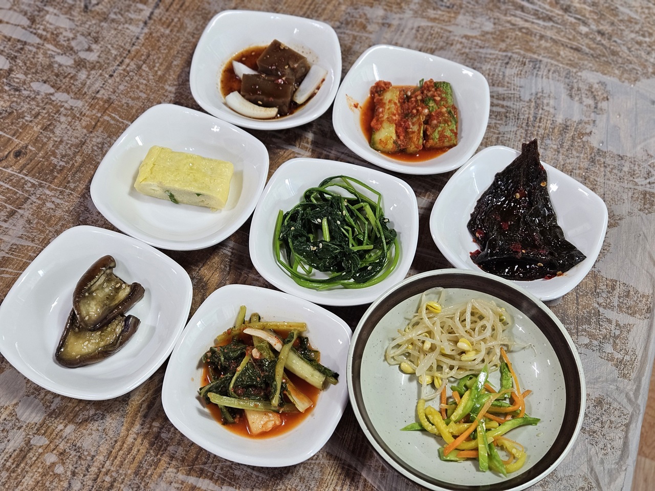 밑반찬부터 세팅되기 시작했어요.