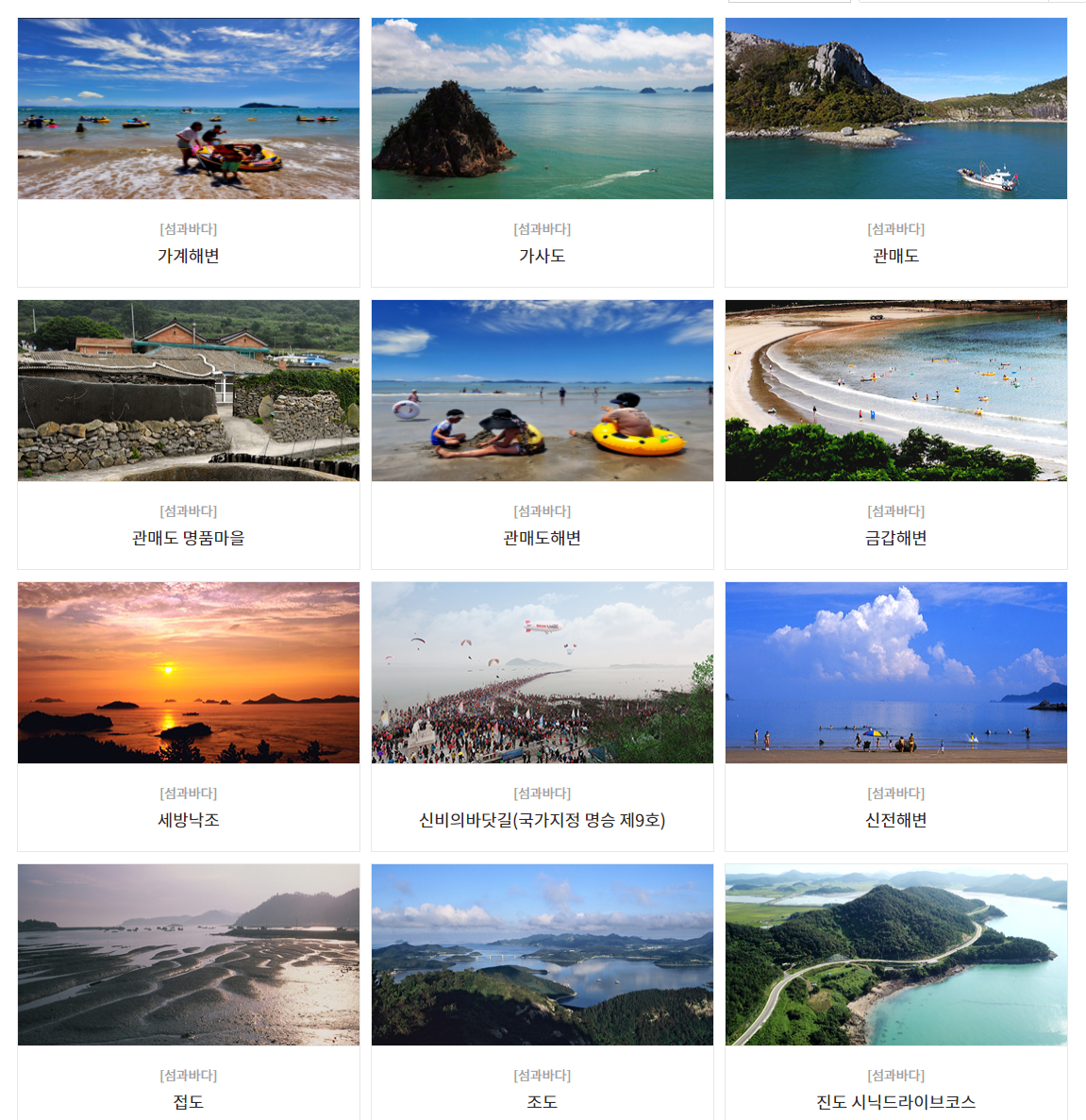 진도의 대표적 관광지입니다. 신비의 바닷길축제와 함께 주변 절경도 함께 다녀보시는 것을 추천드립니다.