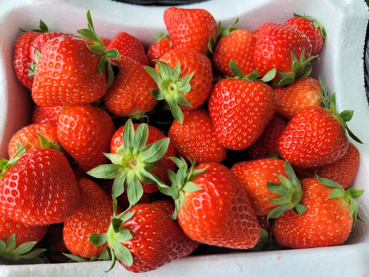 바로 옆 하우스에서 딴 싱싱한 딸기 2팩 사고