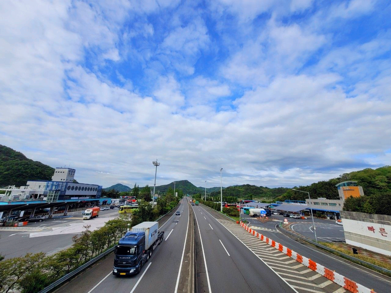 섬진강 휴게소에서 아침을 먹고... 반대편 휴게소로 넘어갈 수 있는 특이한 구조의 휴게소라 반대편으로 넘어가 아침을 먹고 다시 돌아갔답니다. 살짝 무섭기도 했지만 색다른 경험이었네요.