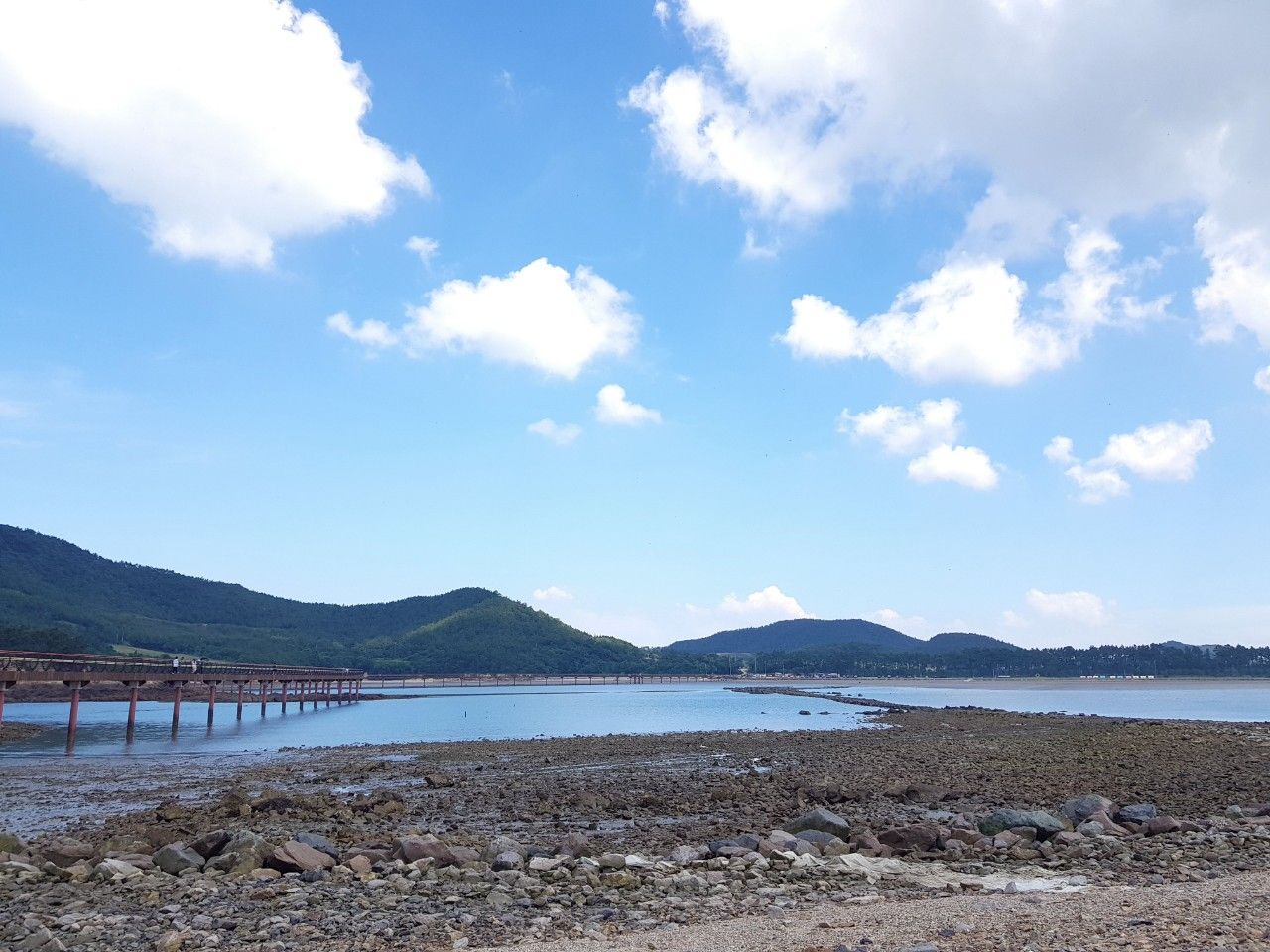 지평선 같은 다리가 참 인상적이었는데요. 다리를 건너며 바닥으로 보이는 갯벌을 구경하는 재미도 있었답니다.