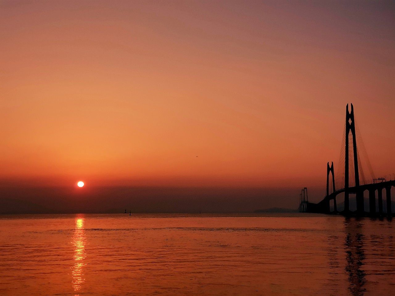 신안으로 연결된 천사대교를 지나 일출을 맞이했는데요~ 잠을 제대로 못 자 비몽사몽이지만 일출은 아주 멋집니다.