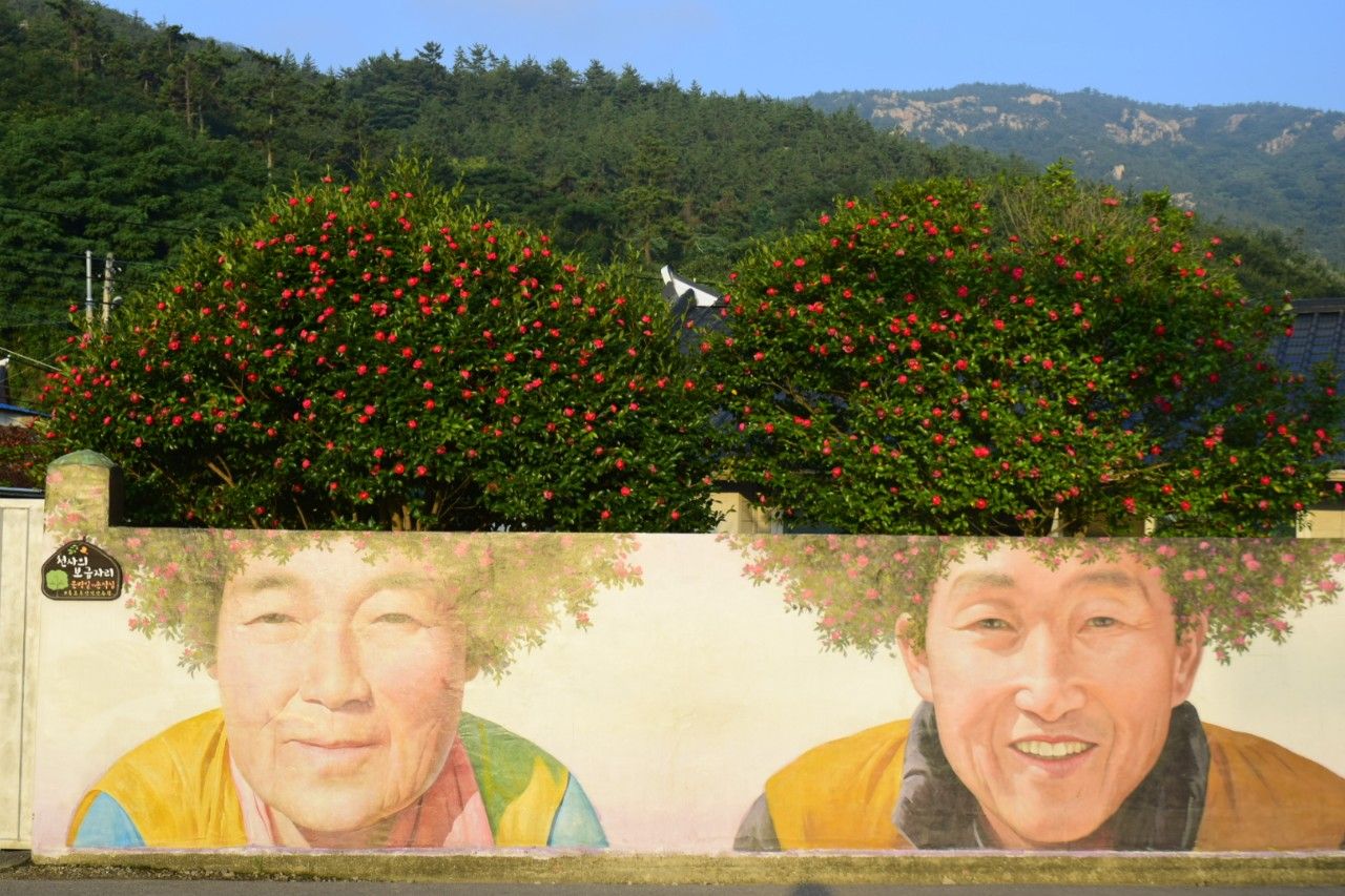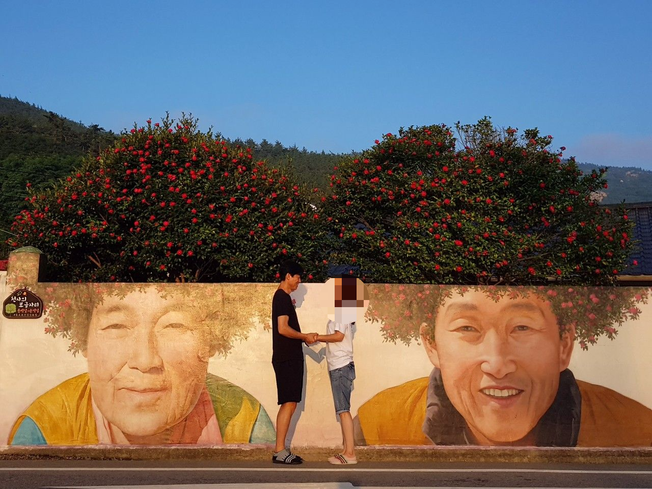 기동삼거리에서 잠시 쉬며 너무나 이쁜 벽화와 동백나무, 친한 척ㅋ 인증샷도 찍은 후~~
