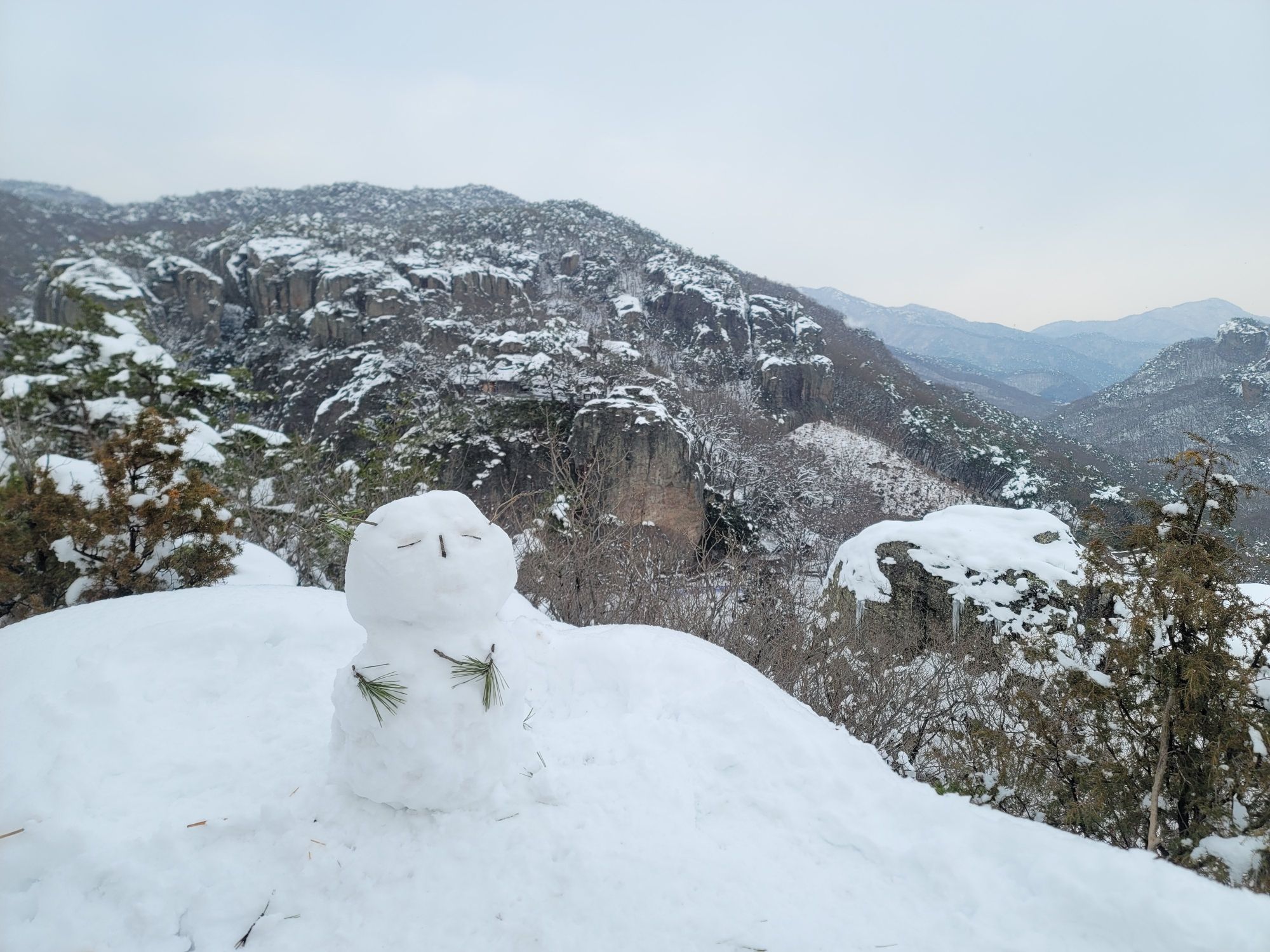 눈 덮인 천마봉 찍고