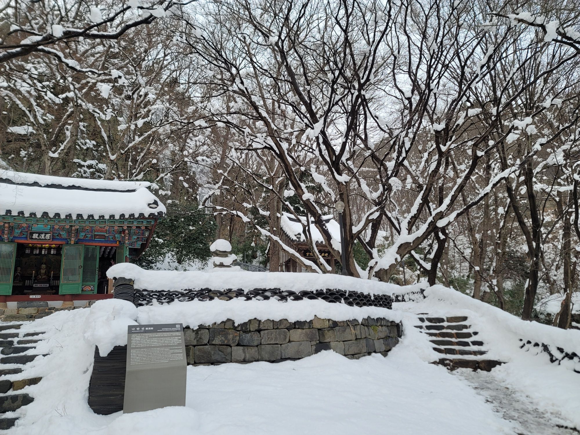 눈 덮인 사찰에서 느껴지는 고즈넉함이 좋아서 한 컷 찍었네요.
