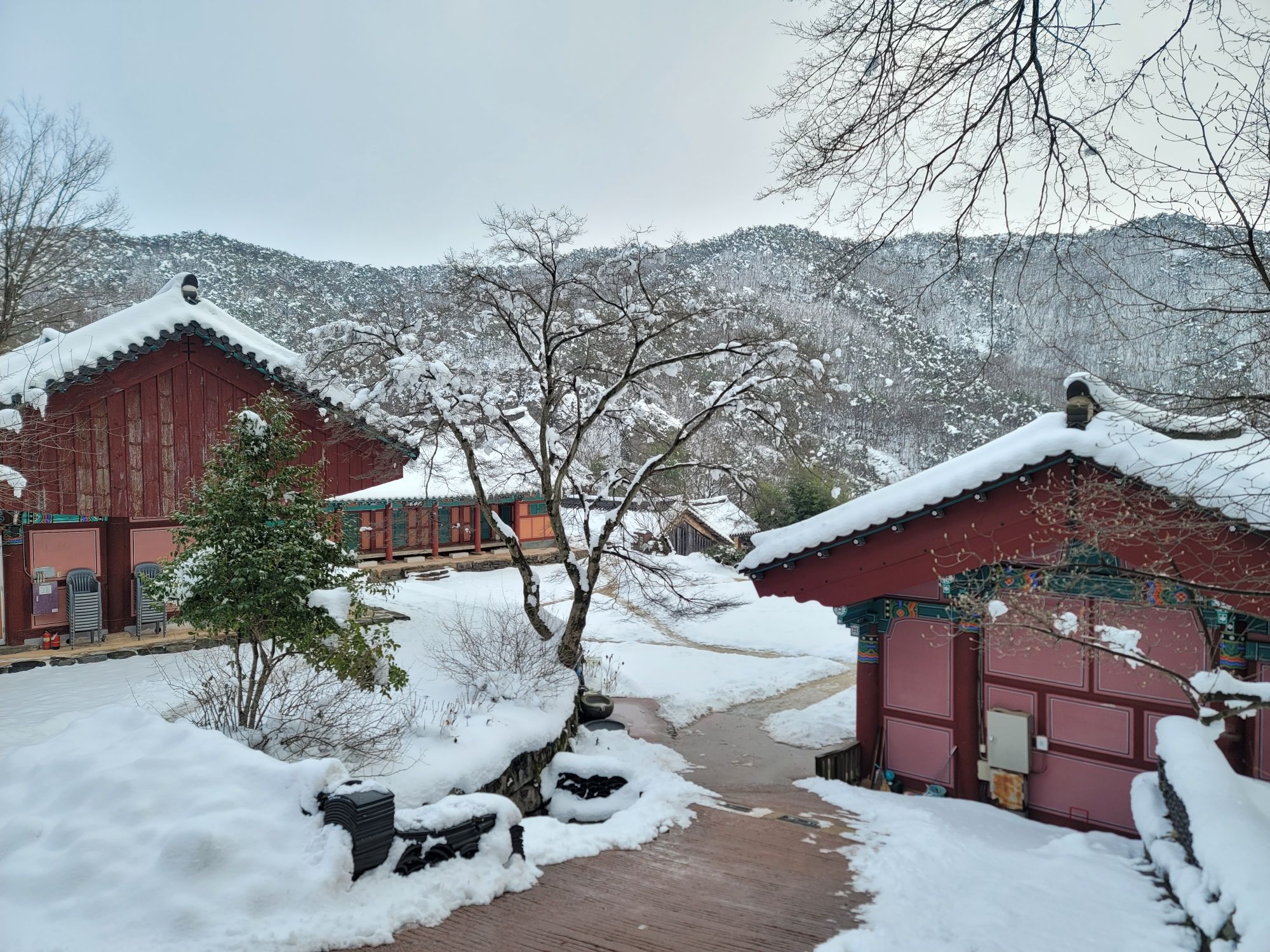 눈 덮인 사찰에서 느껴지는 고즈넉함이 좋아서 한 컷 찍었네요.