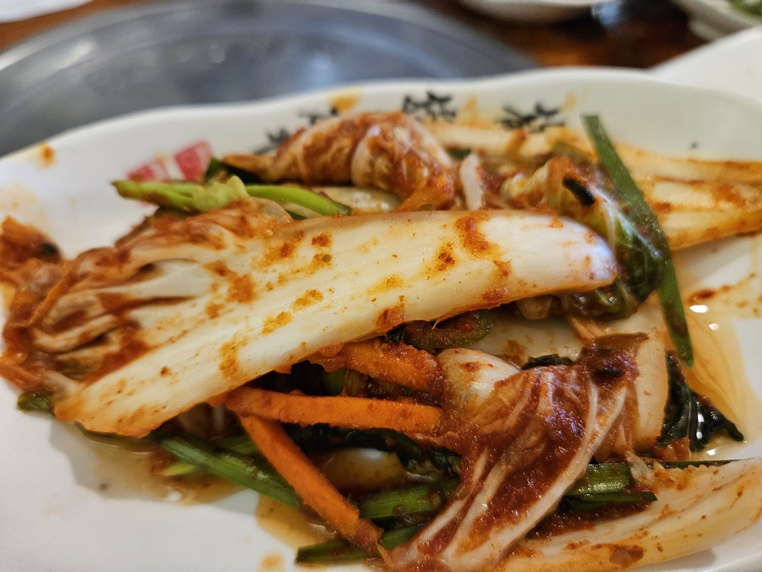 채소와 고기 함께 먹으니 물갈비 처음 먹어보는 일인으로 첫맛은 이건 무슨 맛??이었는데요. 먹다 보니 다시 먹으러 오고 싶겠다 하는 맛이었습니다. 담백하고 자극적이지 않으면서 돼지고기 냄새 전혀 나지 않고 채소도 아삭거려서 씹는 식감도 아주 좋았습니다.