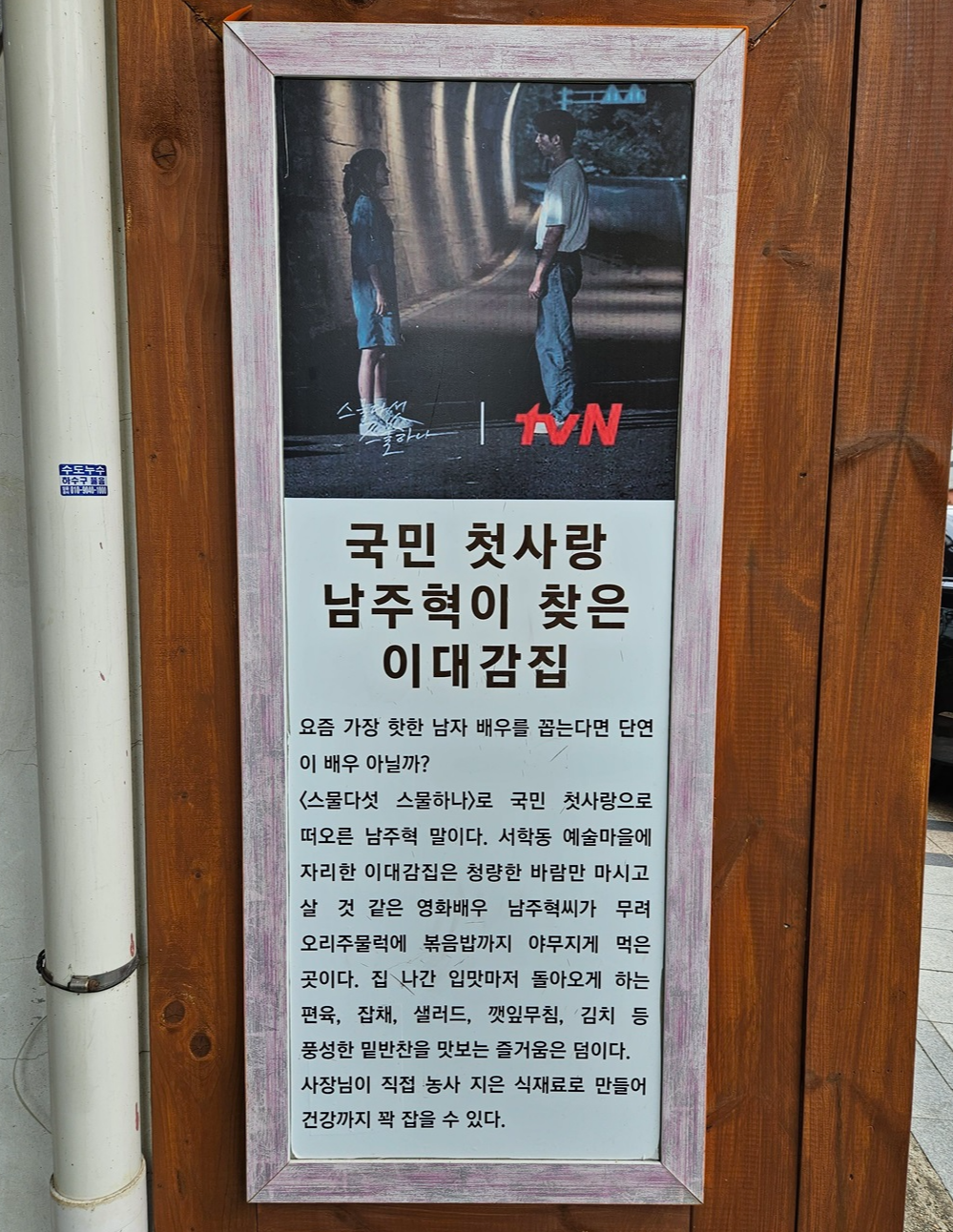 식당 입구에 국민 첫사랑 남주혁이 찾은 이대감집이라는 안내가 있네요~ 남주혁배우가 오리주물럭과 볶음밥을 맛있게 먹었다고 하니 일단 오리주물럭은 먹어봐야겠습니다.