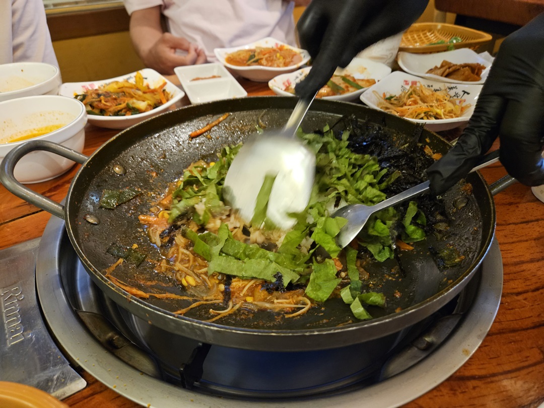 오리주물럭과 물갈비 먹고 나니 배가 불러서 볶음밥 패스할까? 하다가 그래도 주물럭 후 볶음밥은 국룰이라 한공기만 볶았는데요~ 사장님의 현란한 솜씨로 아주 맛있게 볶아졌습니다. 볶음밥은 3,000원입니다.