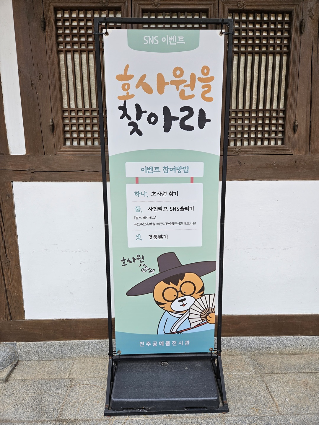 호사원에서 사진 찍고 #전주한옥마을 #전주공예품전시관 #호사원 해시태그 달고 SNS에 올리면 경품도 받을 수 있다고 하니 도전해 보시기 바랍니다.