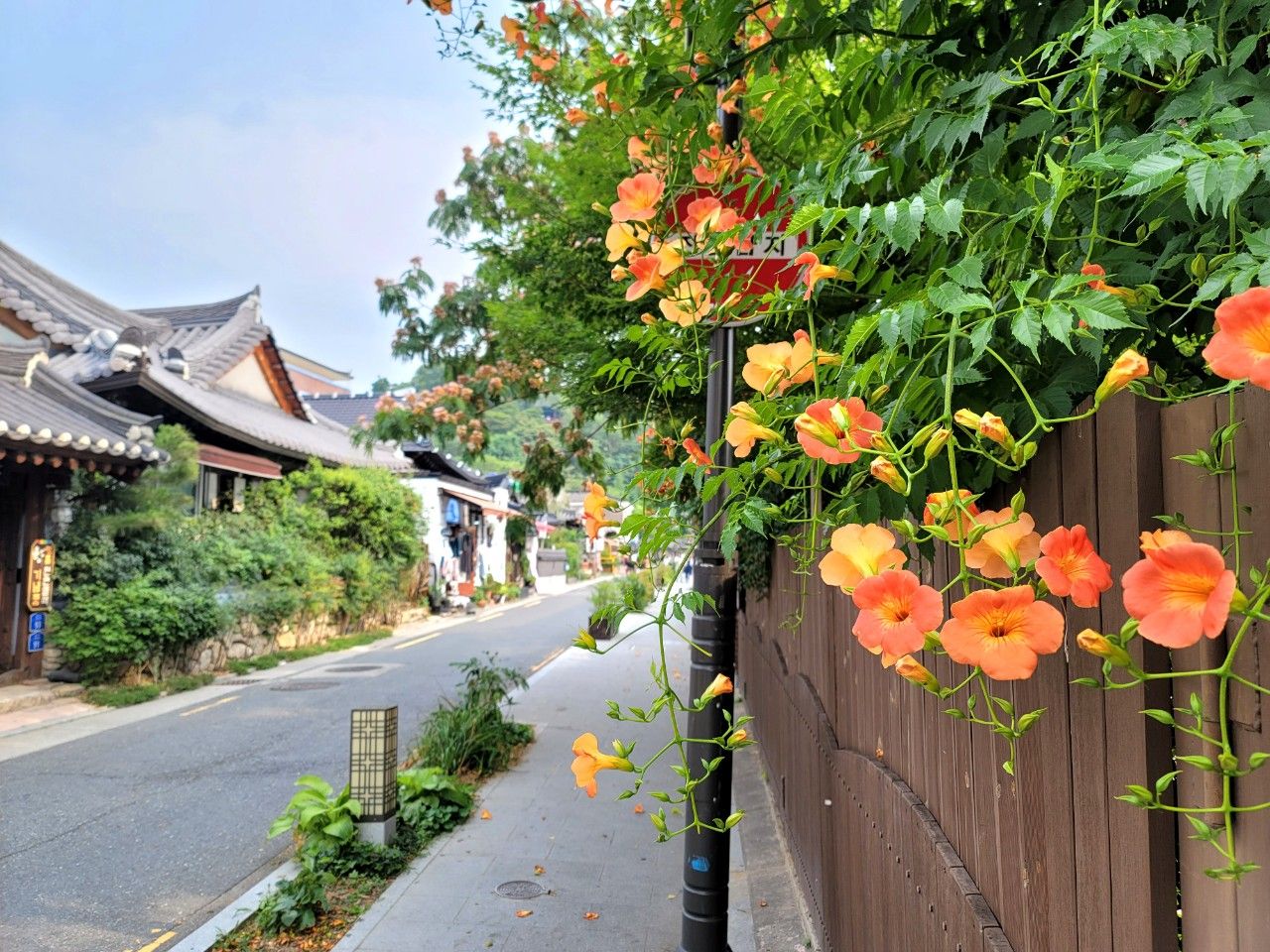 능소화의 계절이 돌아왔네요~ 한옥 담과 기와에 늘어진 능소화가 정말 잘 어울리고 운치를 더해 주는 것 같았습니다.