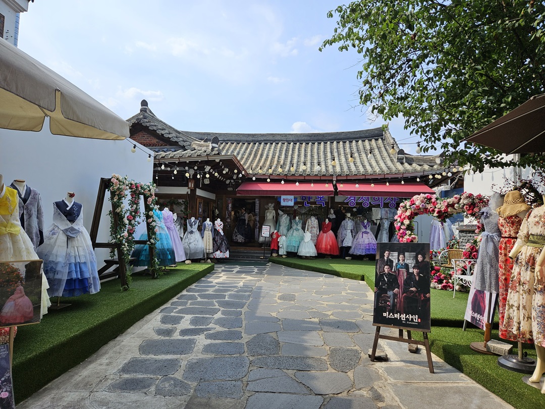 그리고 한옥마을에서 가장 많이 볼 수 있었던 가게가 바로 한복대여하는 곳이었는데요. 종류도 다양해서 한복 입어볼 일 없는 요즘 색다른 기분으로 체험해 봐도 좋을 것 같았습니다.
