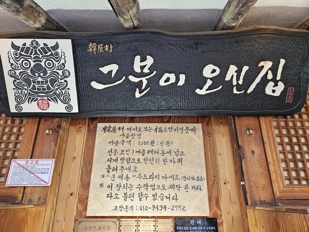 길거리에 운세 보는 뽑기도 있더라구요~ 가게 이름이 '그분이 오신 집'이네요~ 용할 것 같아요^^~ 개띠인 울 둘째 꼬맹이 궁금했나 봅니다.