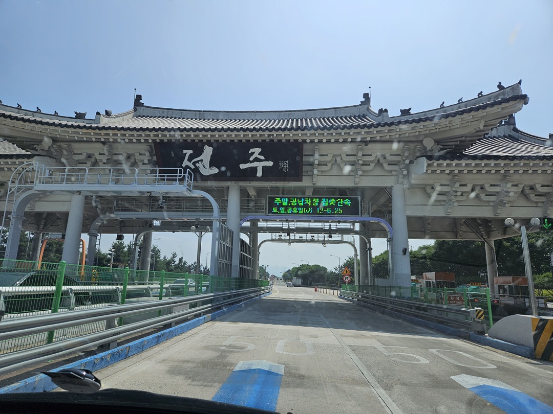 전주의 상징인 한옥으로 된 톨게이트를 지나게 되는데요. 지역의 특징을 살린 건물이 보기 좋은 것 같습니다.