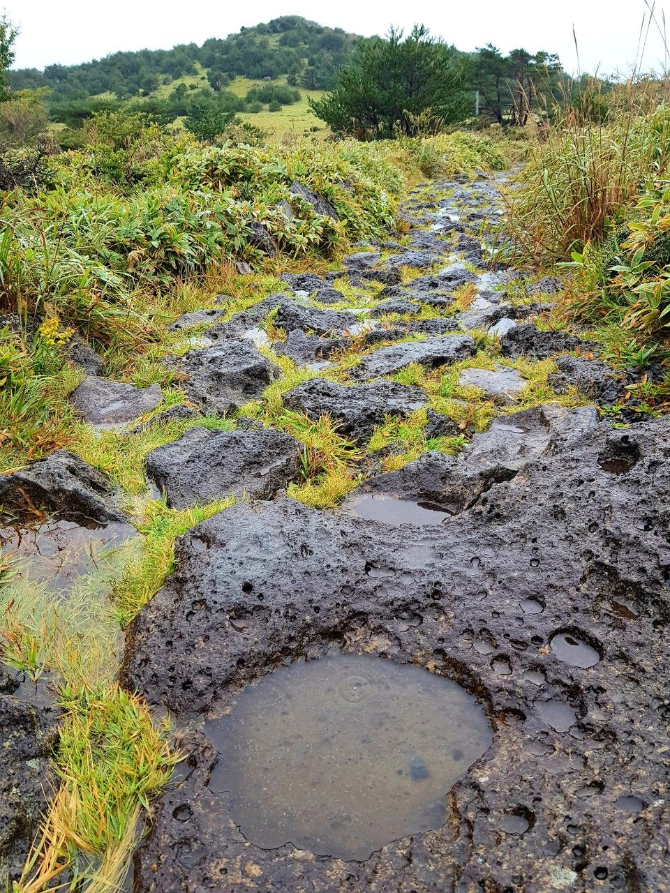 제주도라 현무암 구멍에 물이 고여 정겨워 보였습니다.