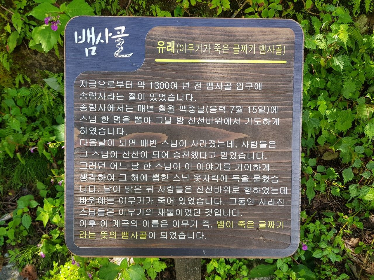 뱀사골 유래도 읽어보았습니다. 이무기가 죽은 골짜기라고 해 뱀사골이라고 불렸다고 합니다. 이무기가 수련을 하는 스님들을 잡아먹었다니...