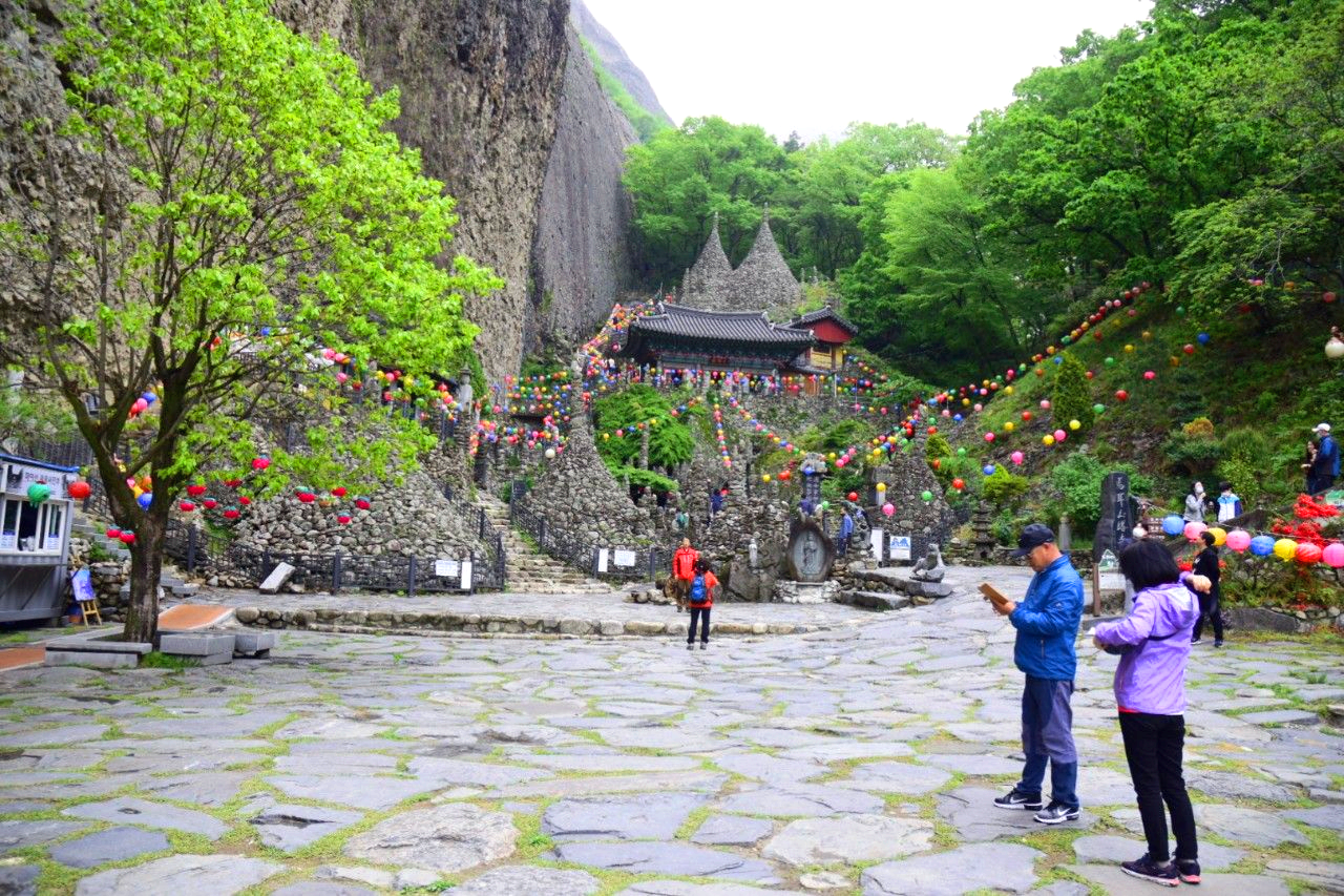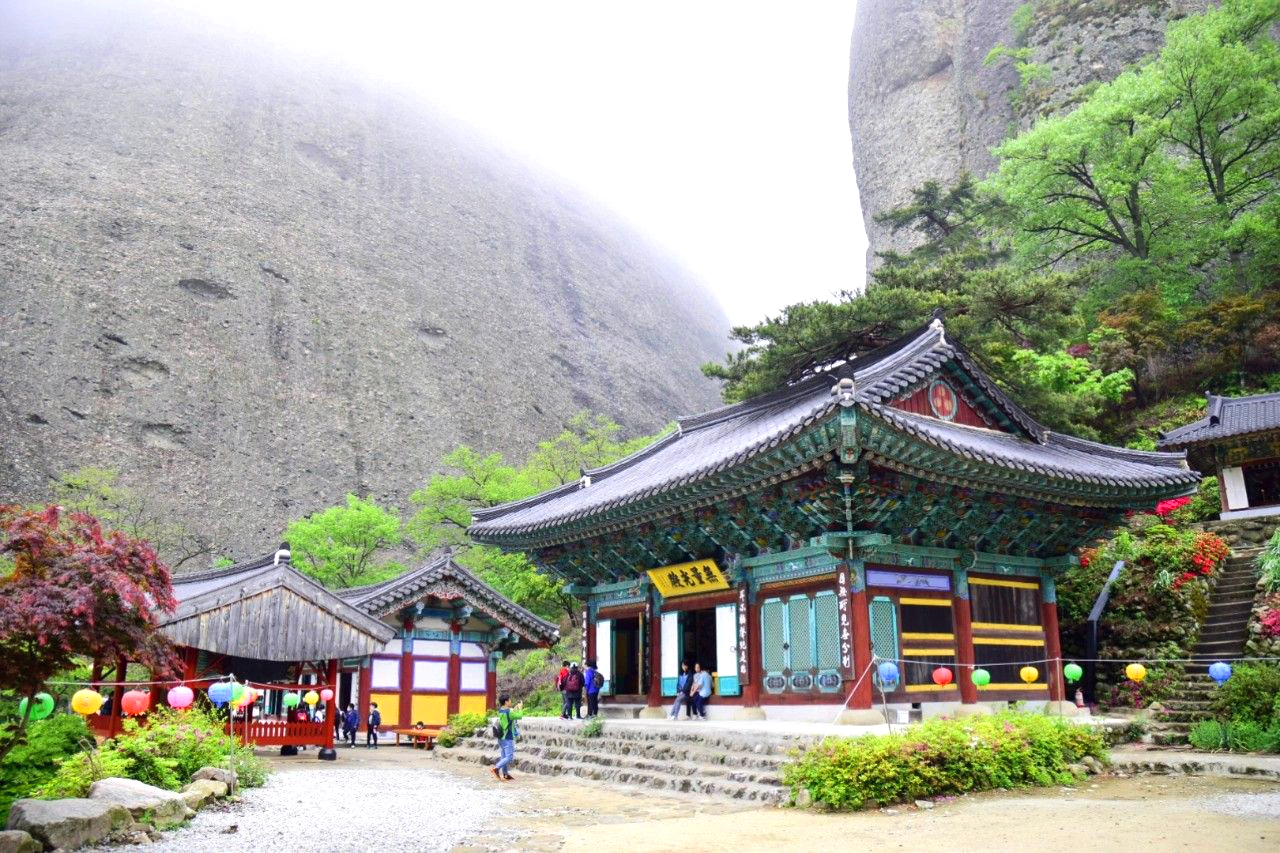 은수사, 조금은 나아진 날씨.. 뒤에 암마이봉과 수마이봉이 정말 멋지게 버티고 있네요.