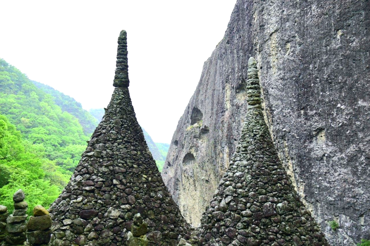 인간이 만든 최고의 걸작이라고 할 수 있는 돌탑입니다. 암마이봉 아래 탑사에 세워진 80여 개의 각기 다른 크기와 모양의 탑들이 장관을 이루고 가장 위쪽에 있는 천지탑이 주탑입니다. 세계적으로도 찾아보기 힘든 신비한 돌탑입니다. 전주이씨 이갑룡 도인에 의해 구국일념의 마음으로 1885년부터 타포니 현상으로 떨어진 돌을 가지고 쌓았다고 합니다.