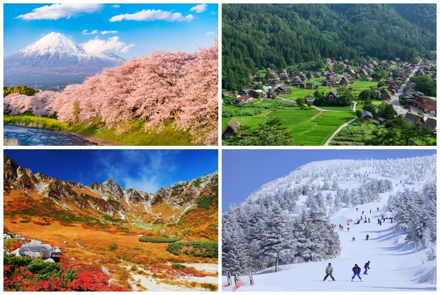 일본의 사계절 날씨는 각기 다른 매력을 가지고 있습니다. 아래 봄여름가을겨울의 대표적 모습입니다.