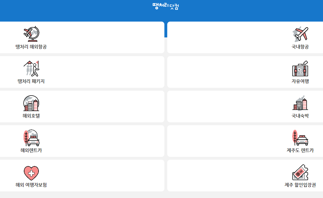 아래는 땡처리닷컴에서 제공하는 메인 카테고리입니다.