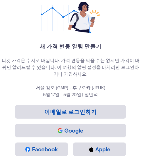 항공권의 가격은 늘 변동이 있습니다. 스카이스캐너에 로그인하면 가격 변동에 대해 수시로 알림도 받으실 수 있습니다.