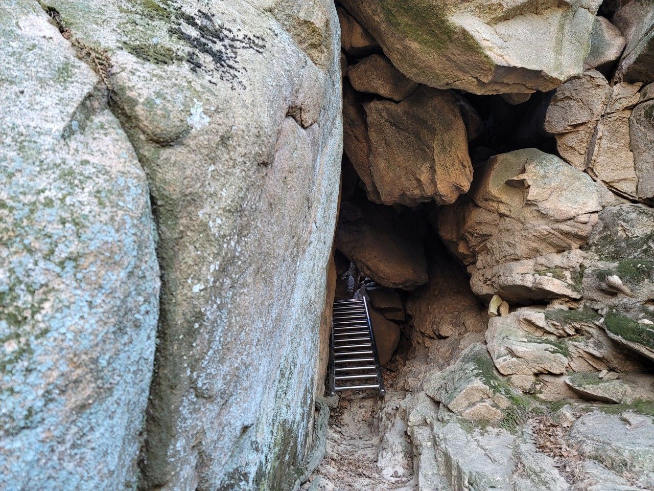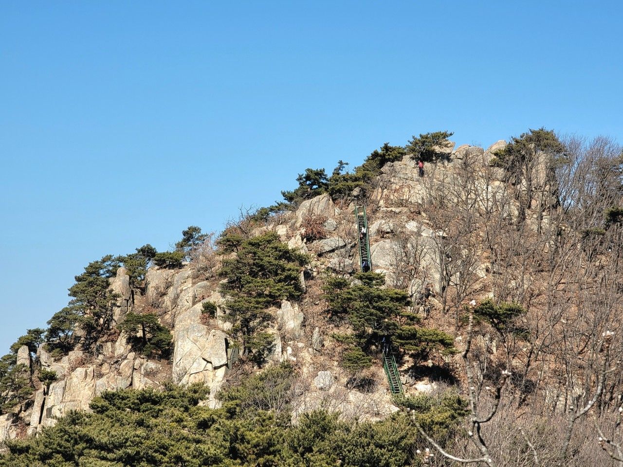 돌길을 안전하게 올라갈 수 있도록 설치된 철 안전바입니다. 겨울철 산행이시라면 장갑을 꼭 착용하기를 추천합니다.