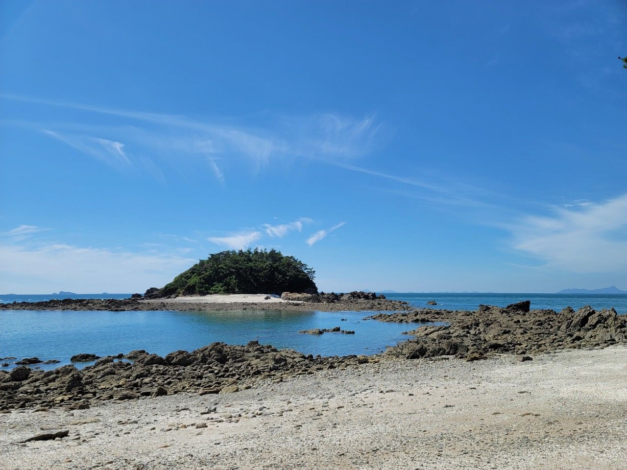 여섬도 보이네요. 여섬은 밀물 파도에 물보라가 일면 장관을 이룬다고 합니다.