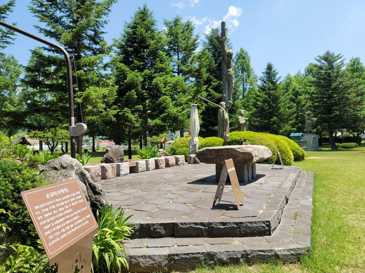 조선시대 천주교 박해 이후 교인들이 은거하며 신앙을 지켜가다 순교당한 곳에 1974년 천주교회에서 성역화한 곳이라고 합니다. 성지 내 연풍향청과 십자가상이 있으며 순교비, 처형석 등이 유물로 전시되고 있습니다.