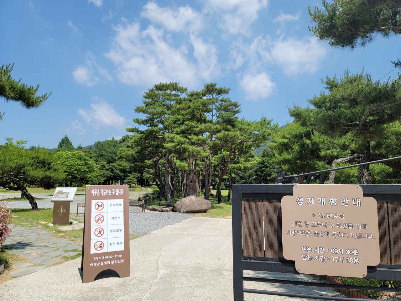 기도하는 곳이라 반려동물, 자전거, 체육활동, 취사 및 음주는 금지되어 있었구요. 9시 30분부터 17시 30분까지 개방을 하고 있었습니다.