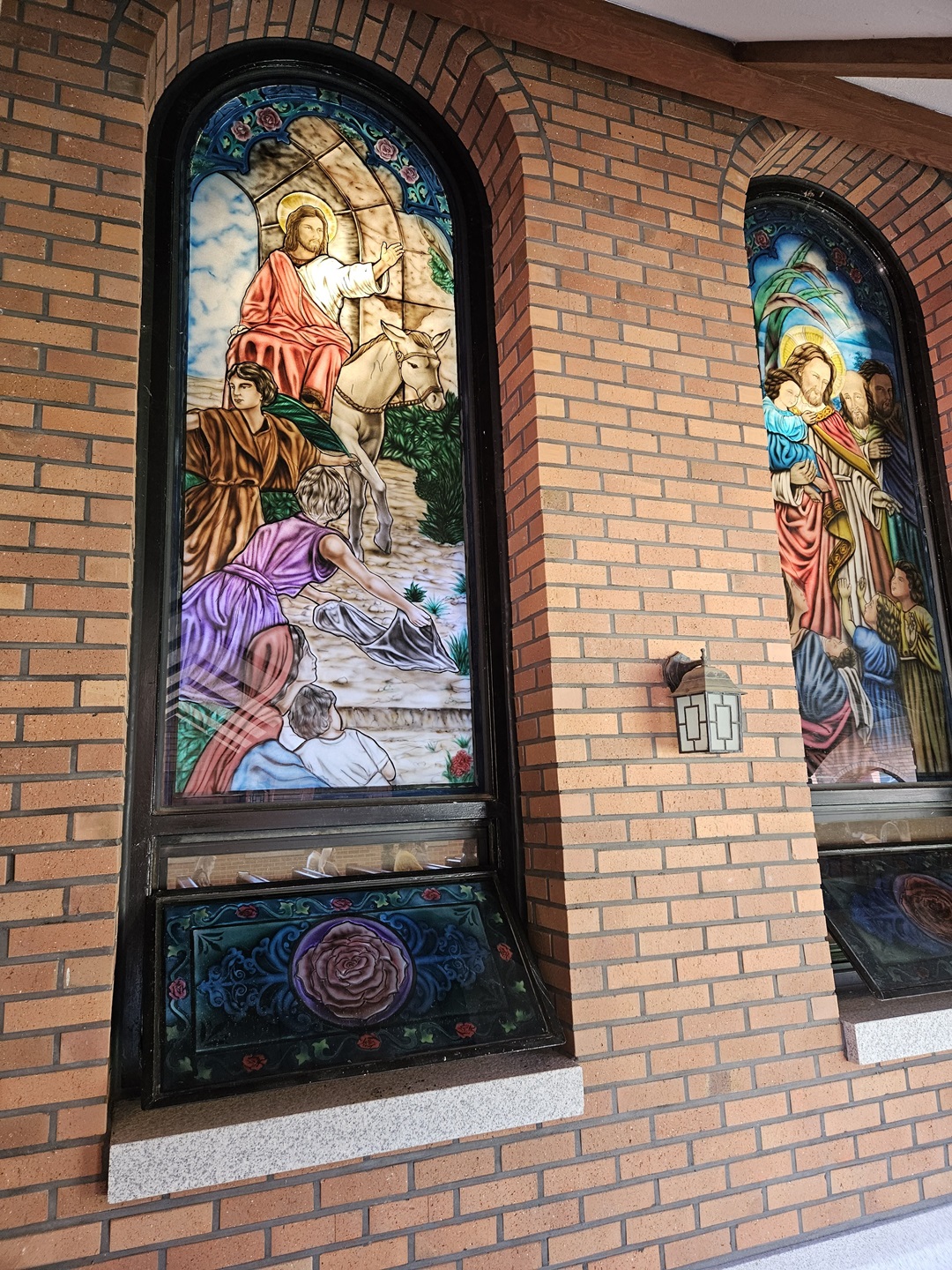 건물 창에는 성경에 나올 것 같은 그림들이 화려하게 그려져 있었고,