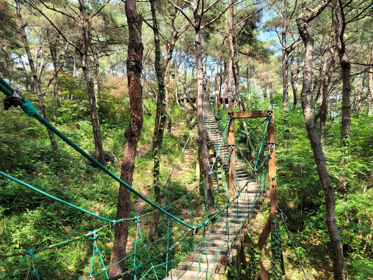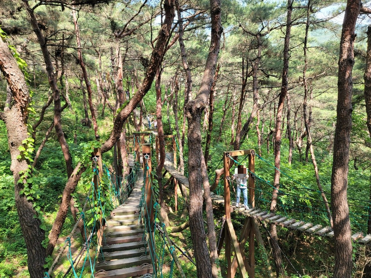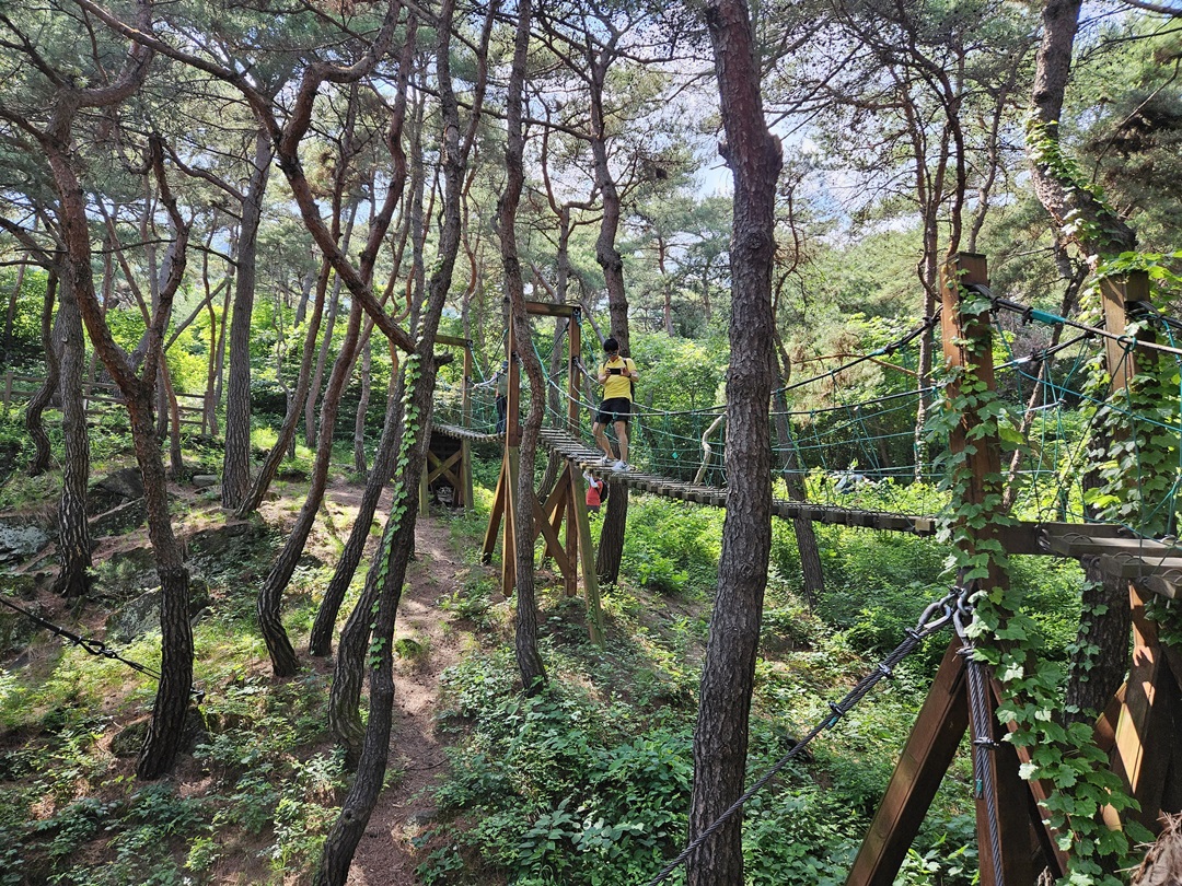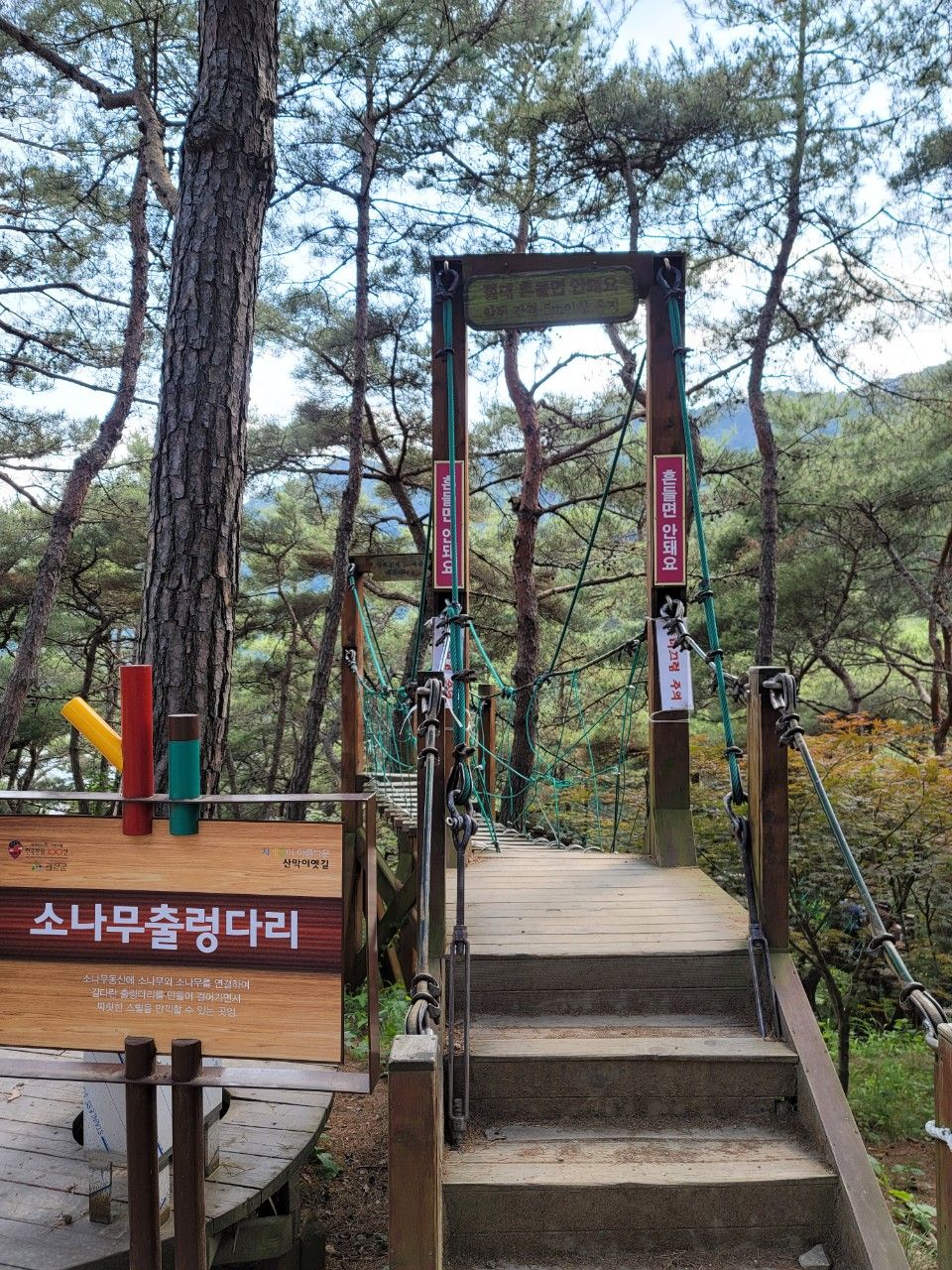 이곳은 소나무 출렁다리입니다. 출렁다리의 색다른 개념이랄까요? 순간 방심하다가는 발이 아래로 빠질 수도 있는 곳이라 집중력을 요하는 곳이었답니다.