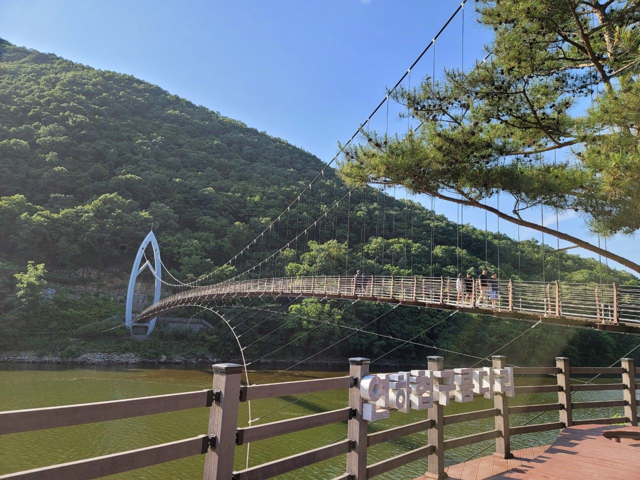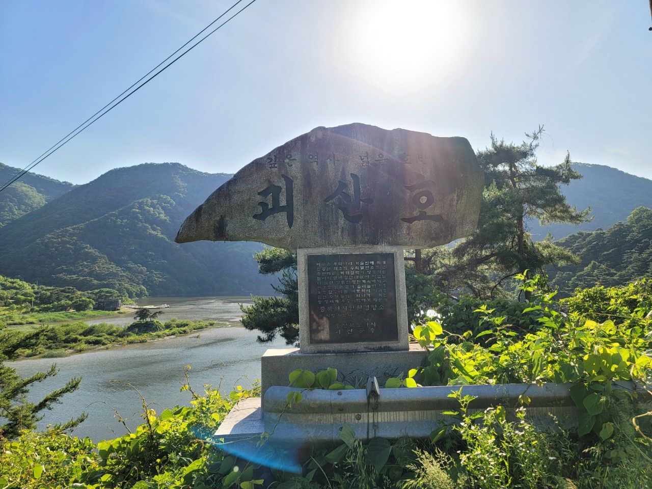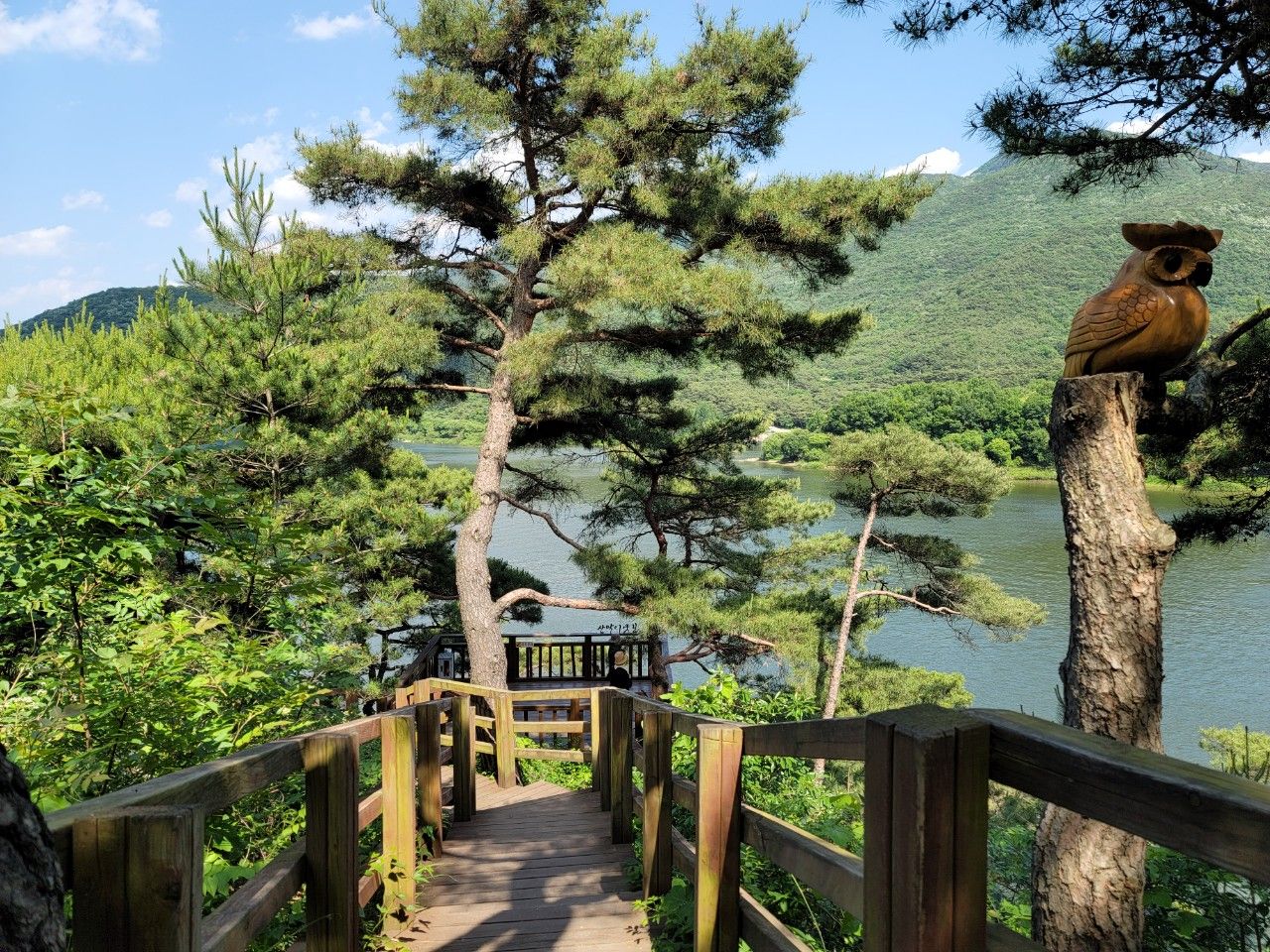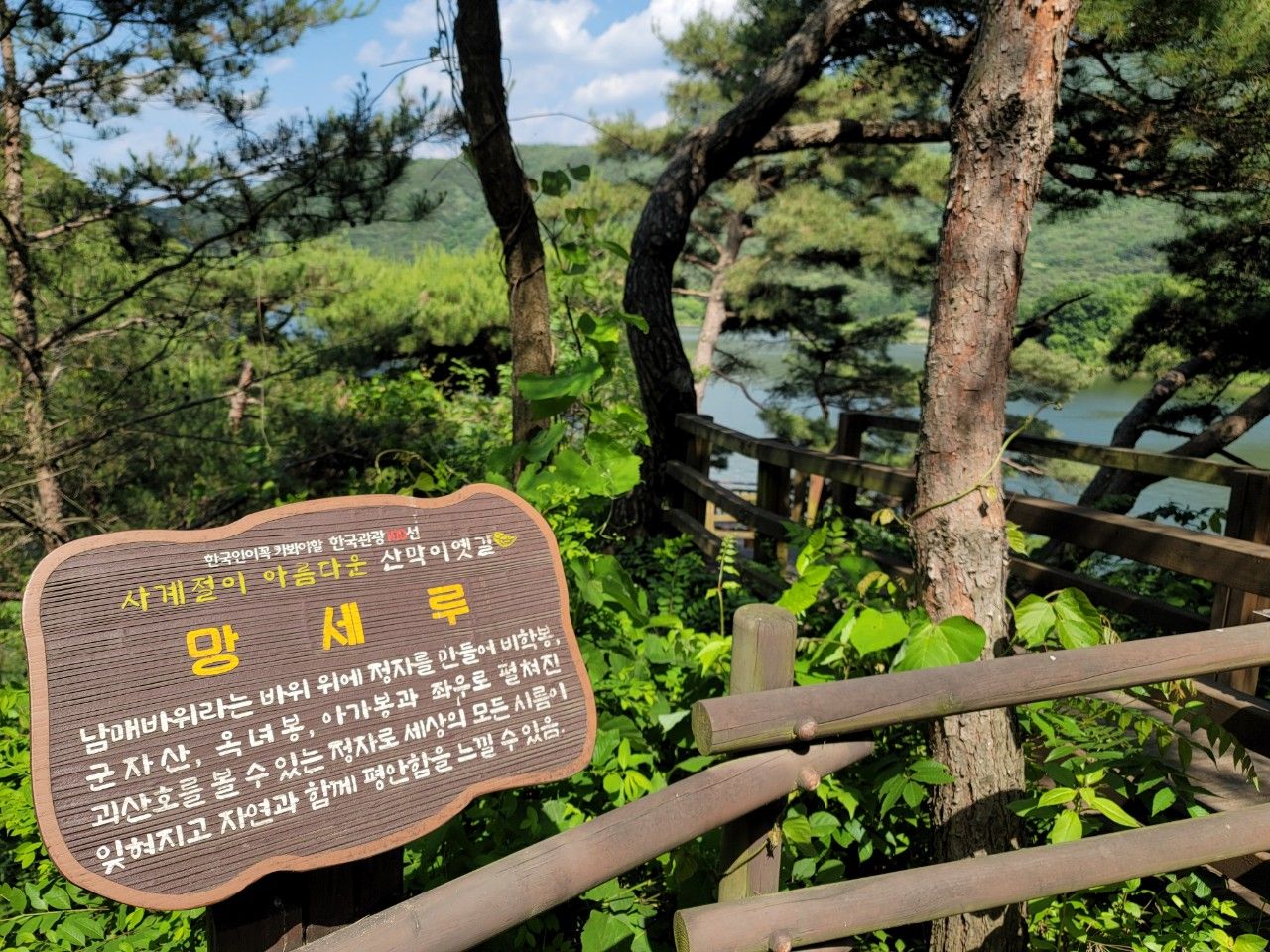 망세루 포토존입니다. 괴산호와 푸른 나무가 가득한 풍경이 아주 좋은 곳이었네요~