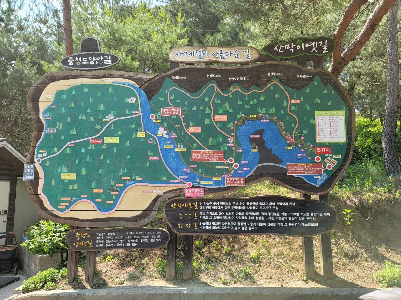 사계절이 아름답다는 산막이옛길 안내도도 찬찬히 살펴보고 길을 떠납니다.