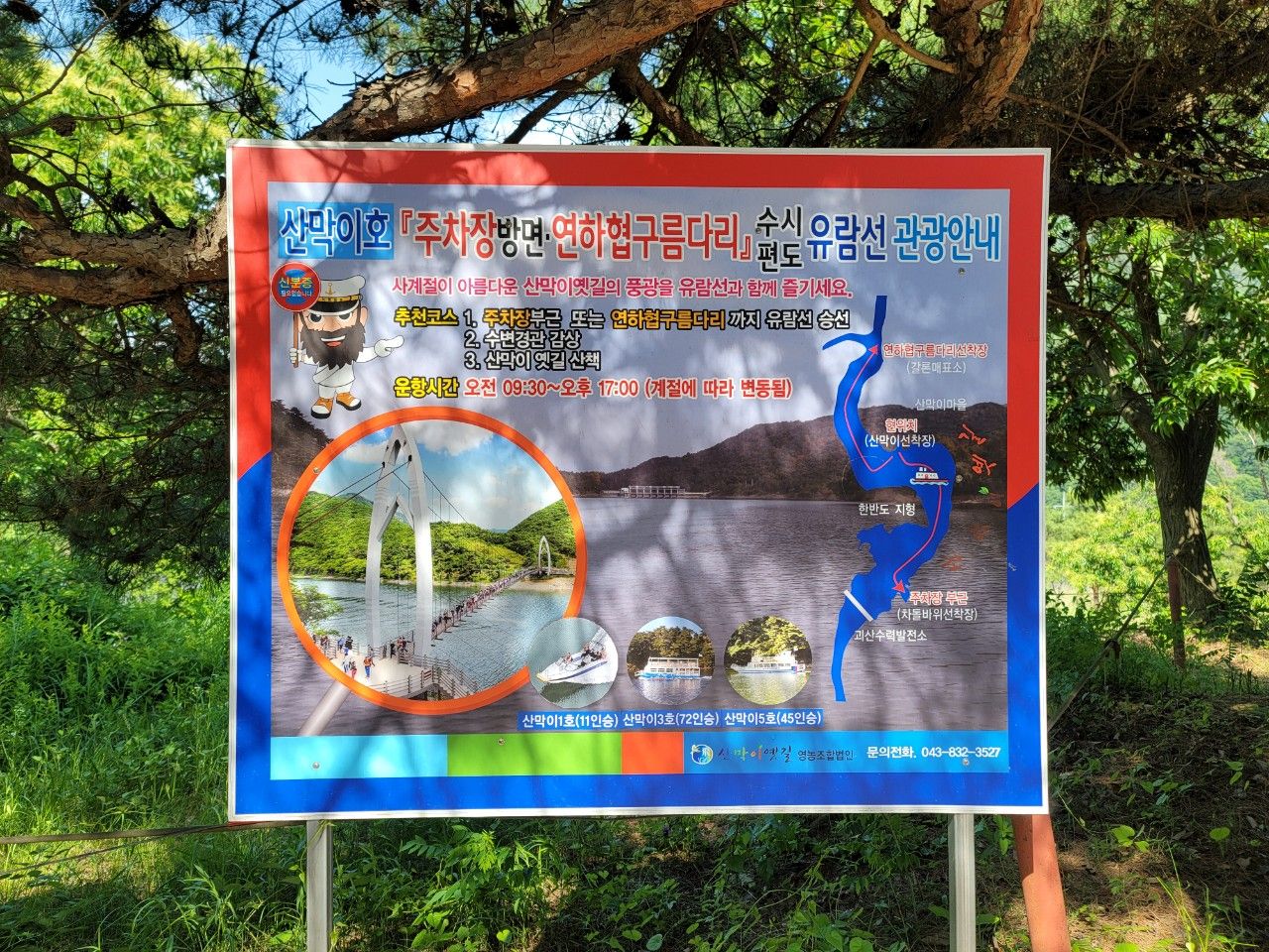주로 편도는 유람선을 타고 한 번은 산책길을 걸어서 이동하는 것을 추천하시는 것 같은데요. 모터보터 8,000원에 수시운항하고 있었고 유람선 승선요금은 주차장(차돌바위)에서 연하협구름다리까지는 10,000원, 주차장~산막이까지 5,000원, 산막이~연하협구름다리까지 5,000원이었습니다.