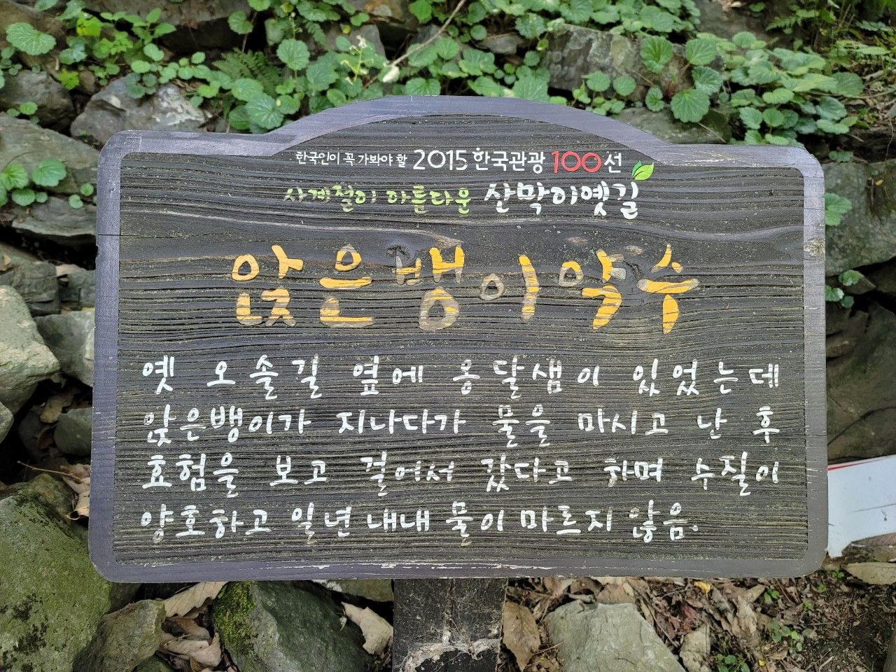 앉은뱅이 약수터입니다. 걷지 못하던 사람이 약수를 마시고 일어서 걸어갔다는 전설? 이 있는 약수더라구요. 한 모금씩 마셔보고 지나갔습니다. 물맛은 미네랄이 많이 들어있는 것 같은 맛이랄까요?