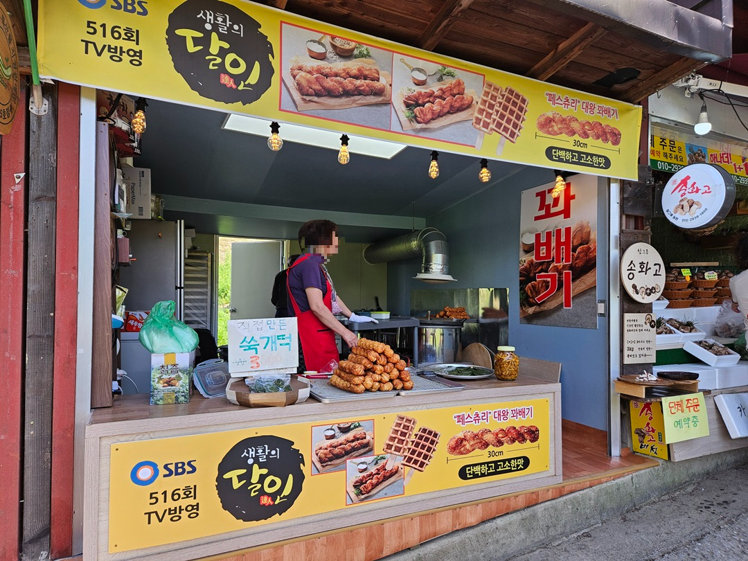 대신 평소 무지 좋아하는 꽈배기 구매는 피할 수 없었는데요. 길이가 25센티 정도의 아주 큰 꽈배기 1개 3,000원, 2개 5,000원이라 2개 구매했습니다. 맛은 그냥 평범...이었는데요. 쫀득하거나 바삭한 맛이 조금 덜했지만 그래도 달콤한 설탕 꽈배기 참을 수 없어 하나 뚝딱 먹어치웠습니다.ㅋㅋ