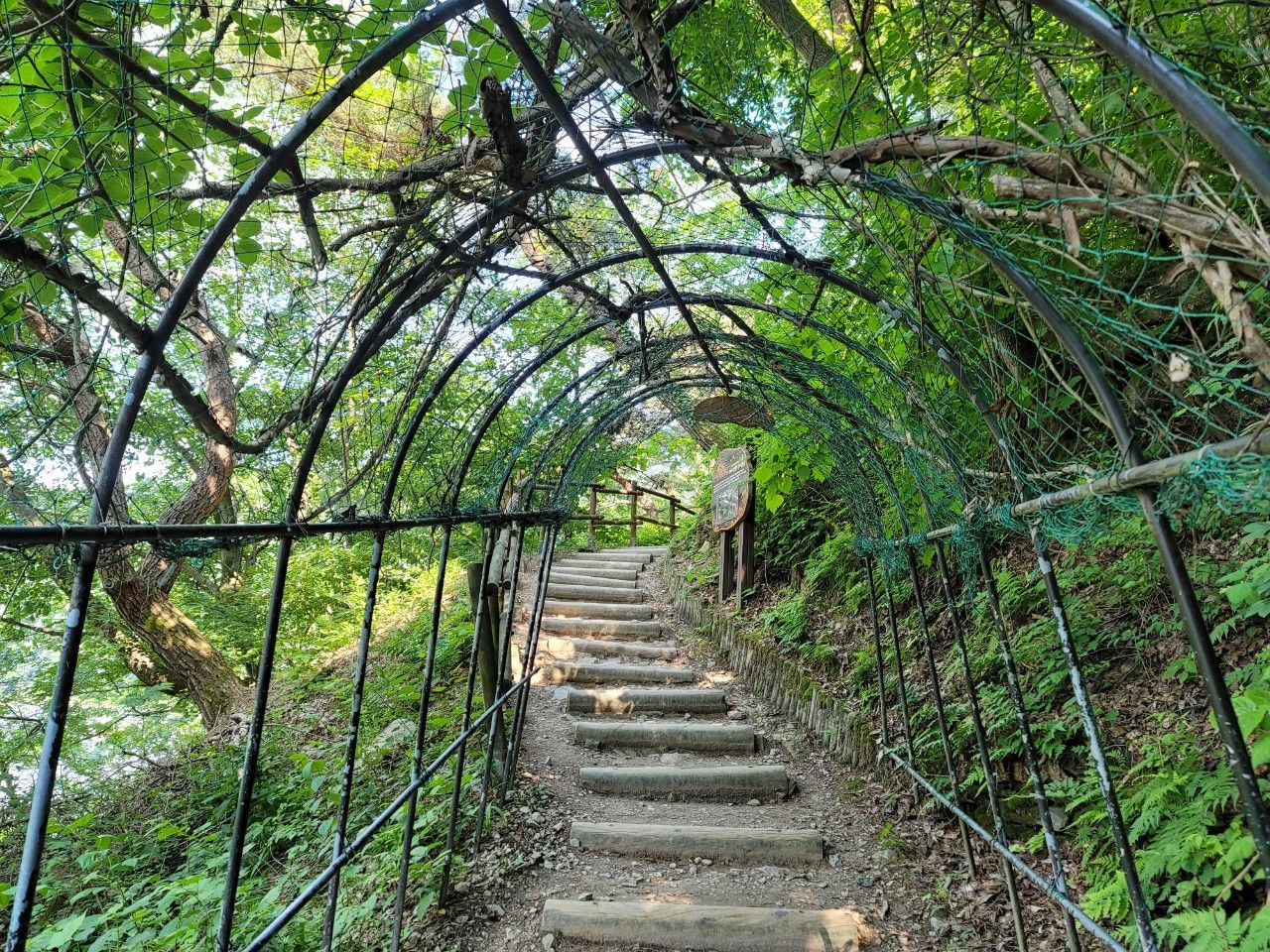 나뭇잎이 많이 자라 아주 시원한 산책로가 계속 연결되었는데요. 오르락 내리락은 조금 있습니다.