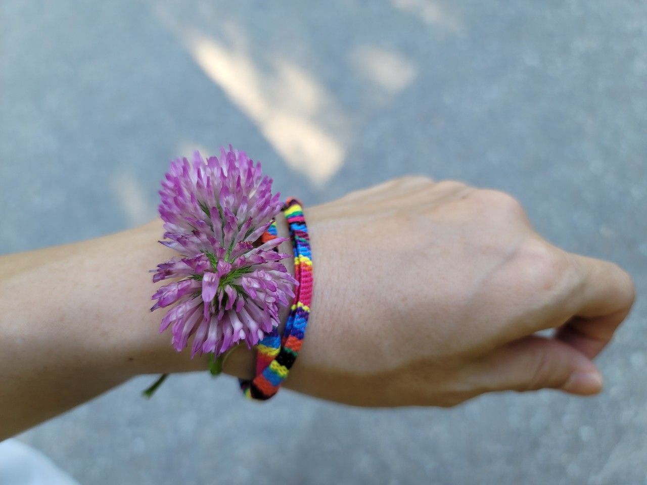 도롯가에 피어있는 네잎클로버 꽃으로 팔찌도 하나 만들어 주고...