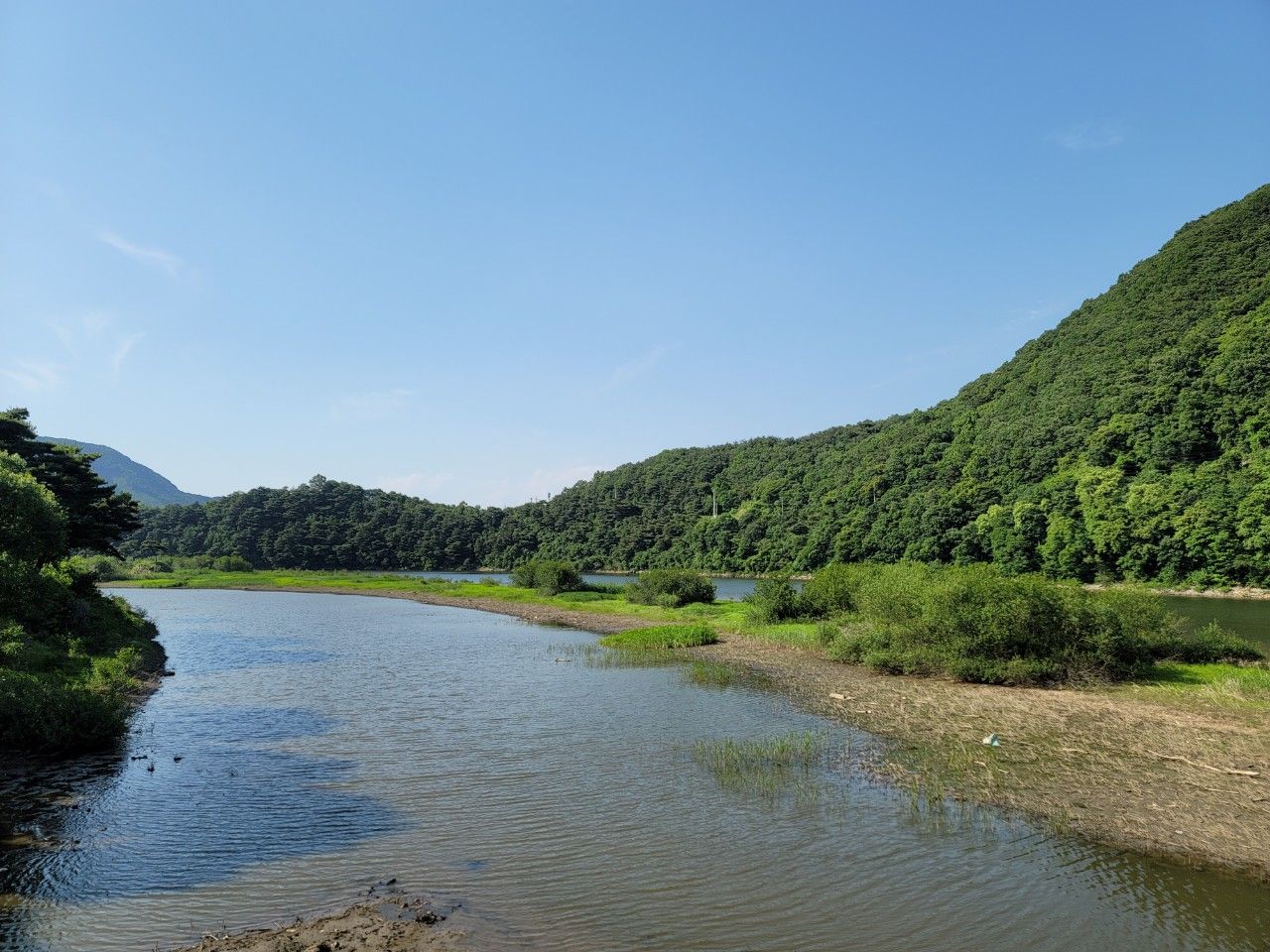 반대편 정상에서 내려다보면 우리나라 지형과 닮았다고 하는 곳입니다. 산에 오르기는 여유가 되지 않아 꾀꼬리전망대에서 사진만 찍어보았네요~