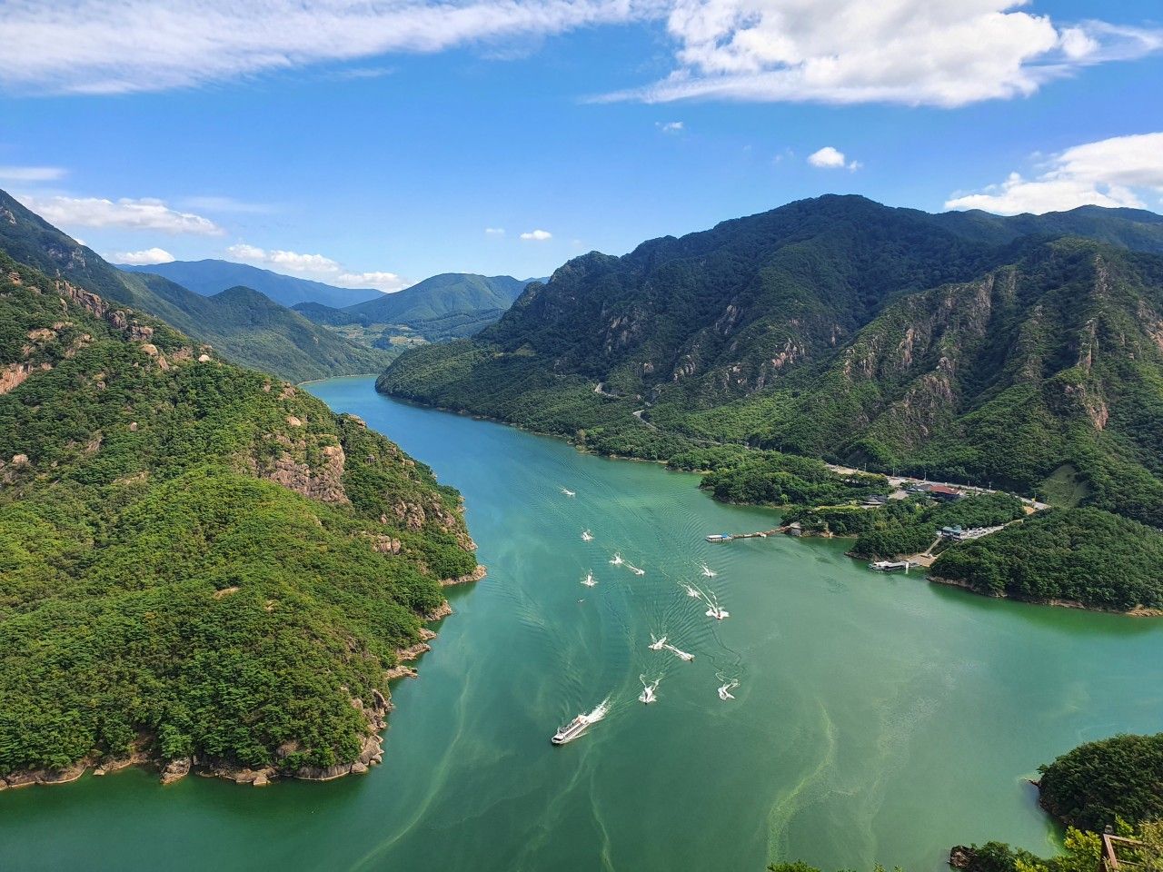 엄청나게 긴 제천의 명물 옥순봉 출렁다리도 보이고~
