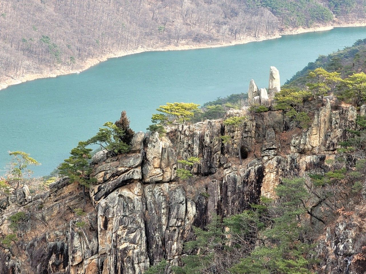 🔎 충북 단양읍 충주호 방면에 위치한 산으로 단양팔경 중 수상관광지로 유명한 구담봉과 옥순봉에서 올려다 보이는 바위산이 제비봉입니다.